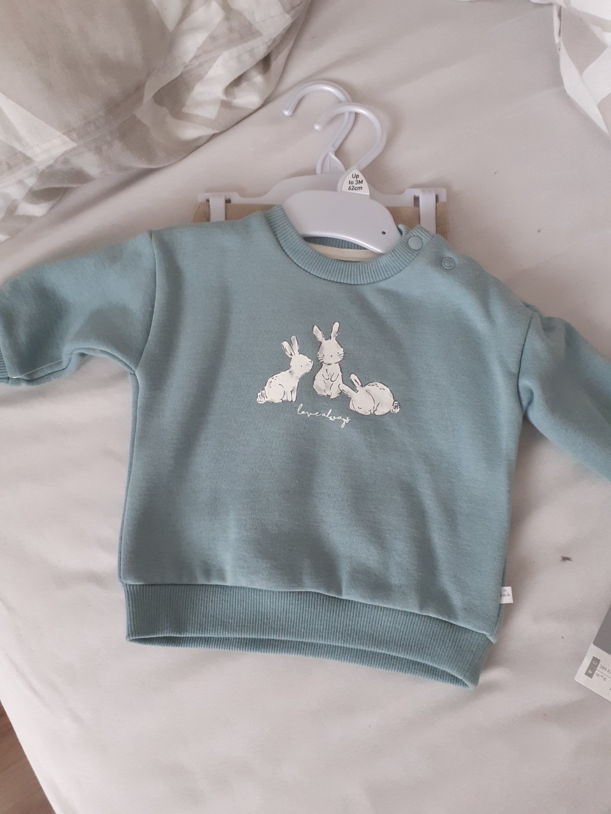 Komplet makkucka mikina a leginove nohavice (kupili sme k Velkej noci ale nakoniec sme obliekli ine, tak toto zostalo nevyuzite).
