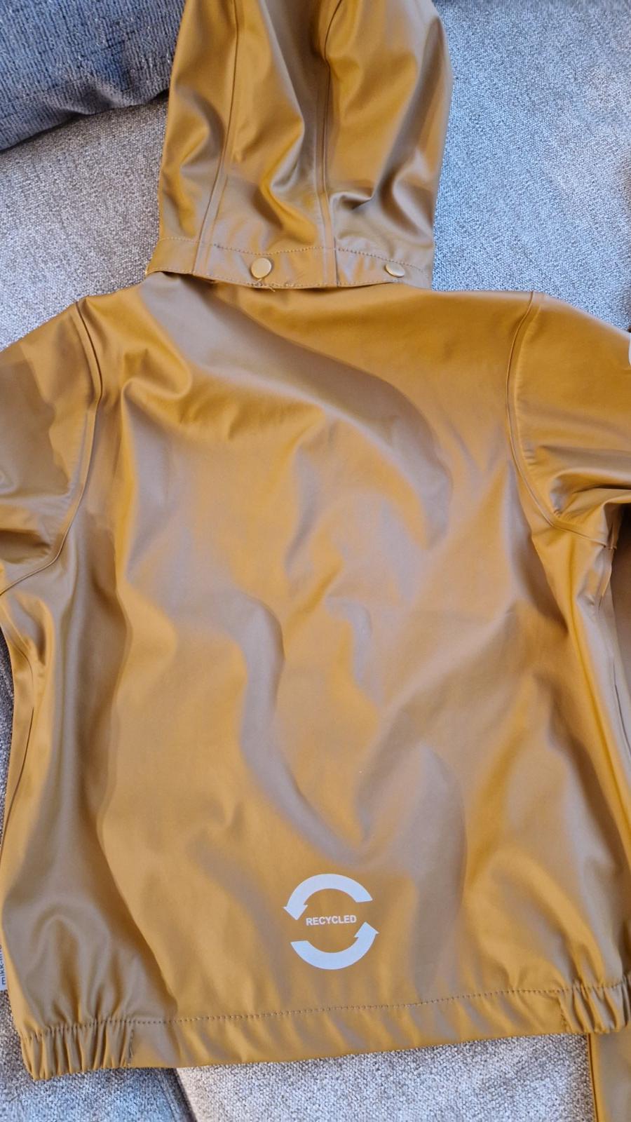 Perfektná súprava do dažďa kupovaná v ježko bežko nosená synom 1 sezónu v super stave, pri fotení som našla 1 mini zader vpredu pri gombikoch viď foto, a zvnútra na menovkách je zatreté meno fixkou na textil, dá sa prelepiť alebo napísať meno pod to.