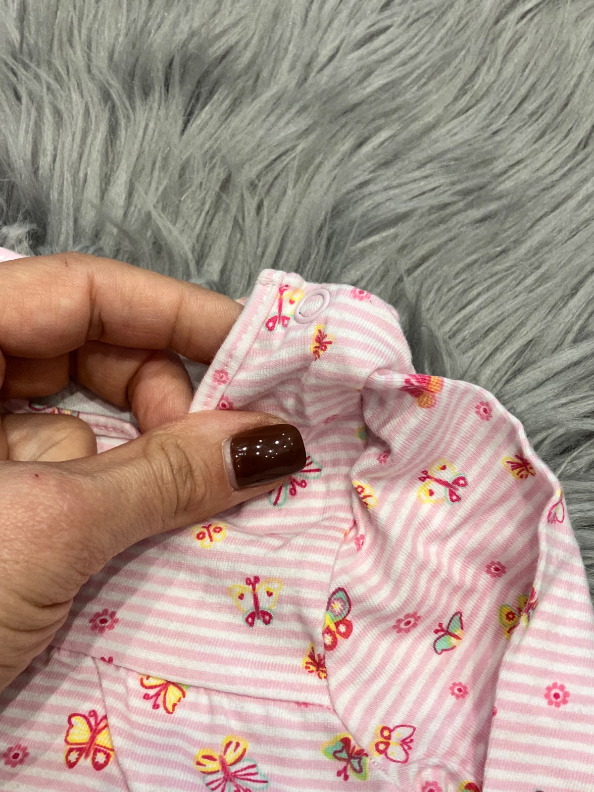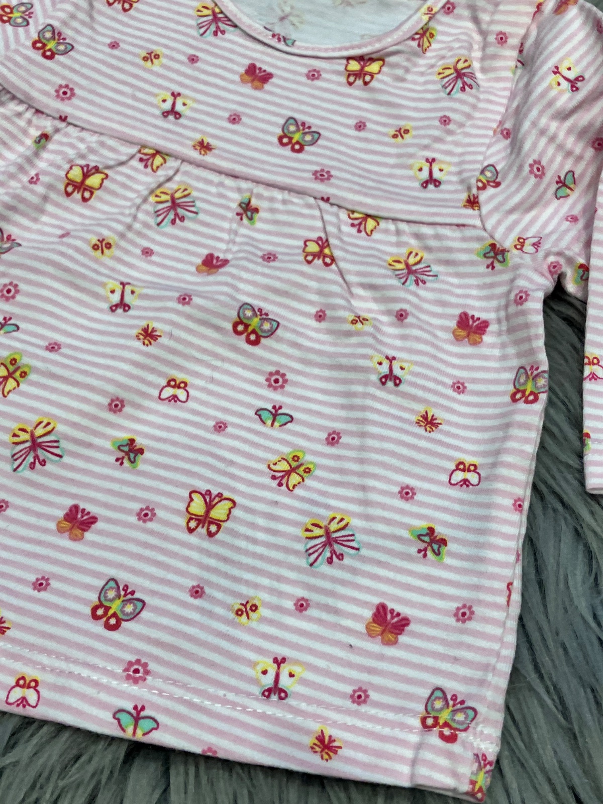 dievčenská pásikavá tunika s dlhým rukávom s kvetmi a motýľmi, zapínanie na ramene na cvoky, elastická, materiál 100%bavlna,