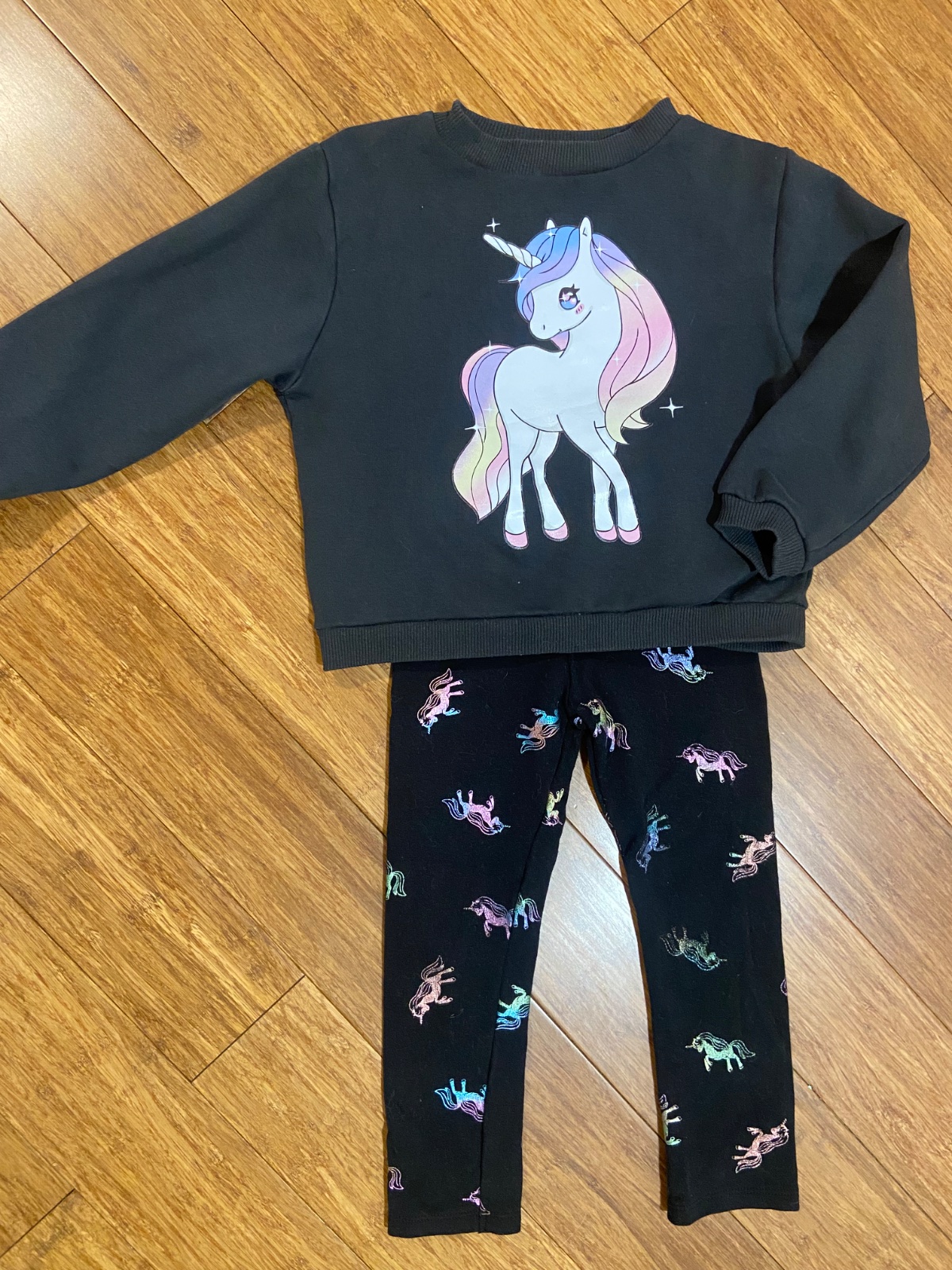 Vo veľmi dobrom stave. - tričko + legínky = H&M veľ. 98/104 - vesta = next veľ. 104