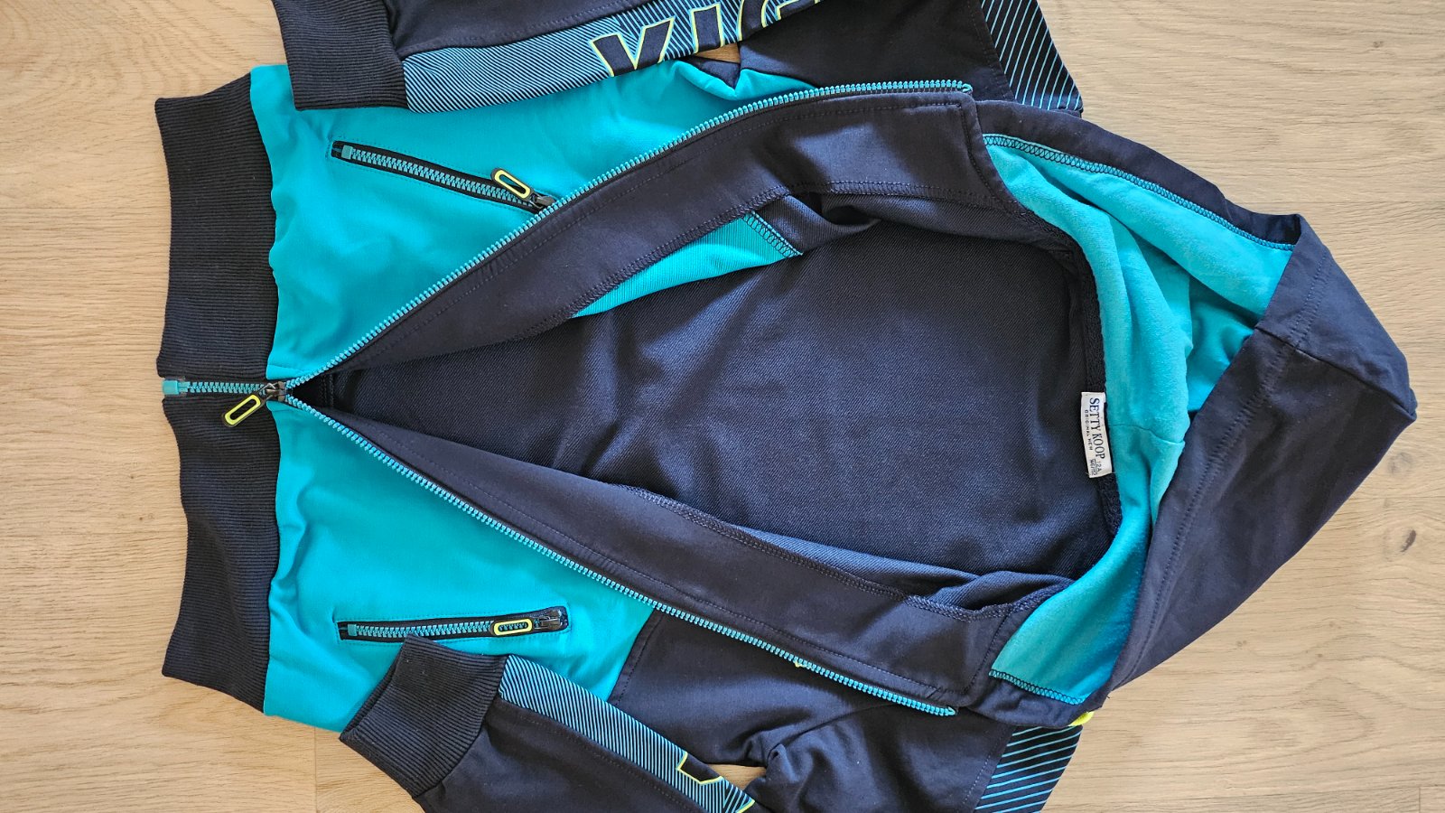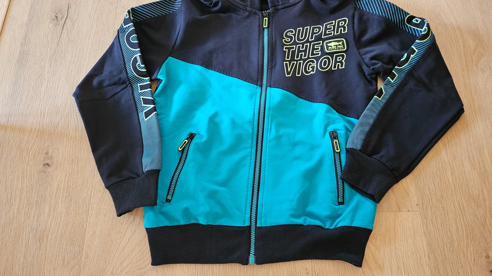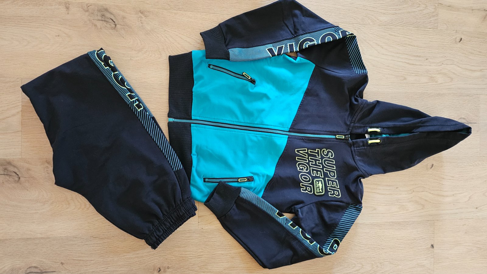 Pekná teplakova suprava, viac menej sme ju šetrili, až sme vyrástli, mikina nosena pár krát tepláky o niečo viac no stále zachované.