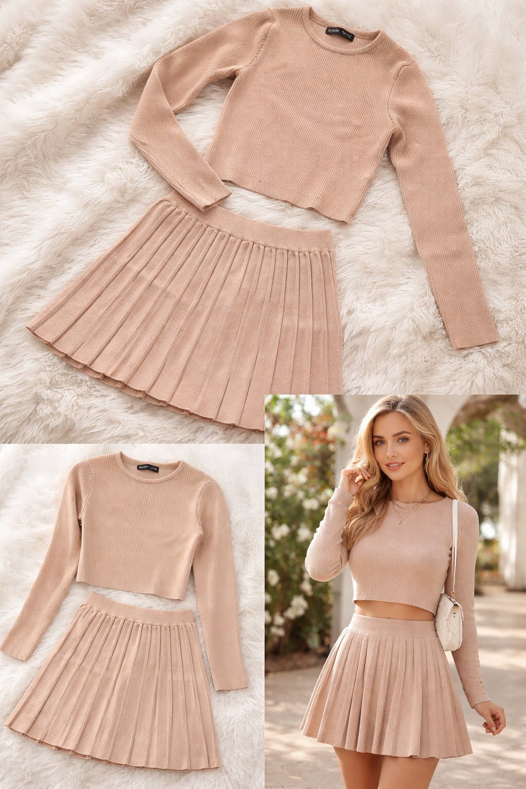 S bezovy set svetrik+ sukna