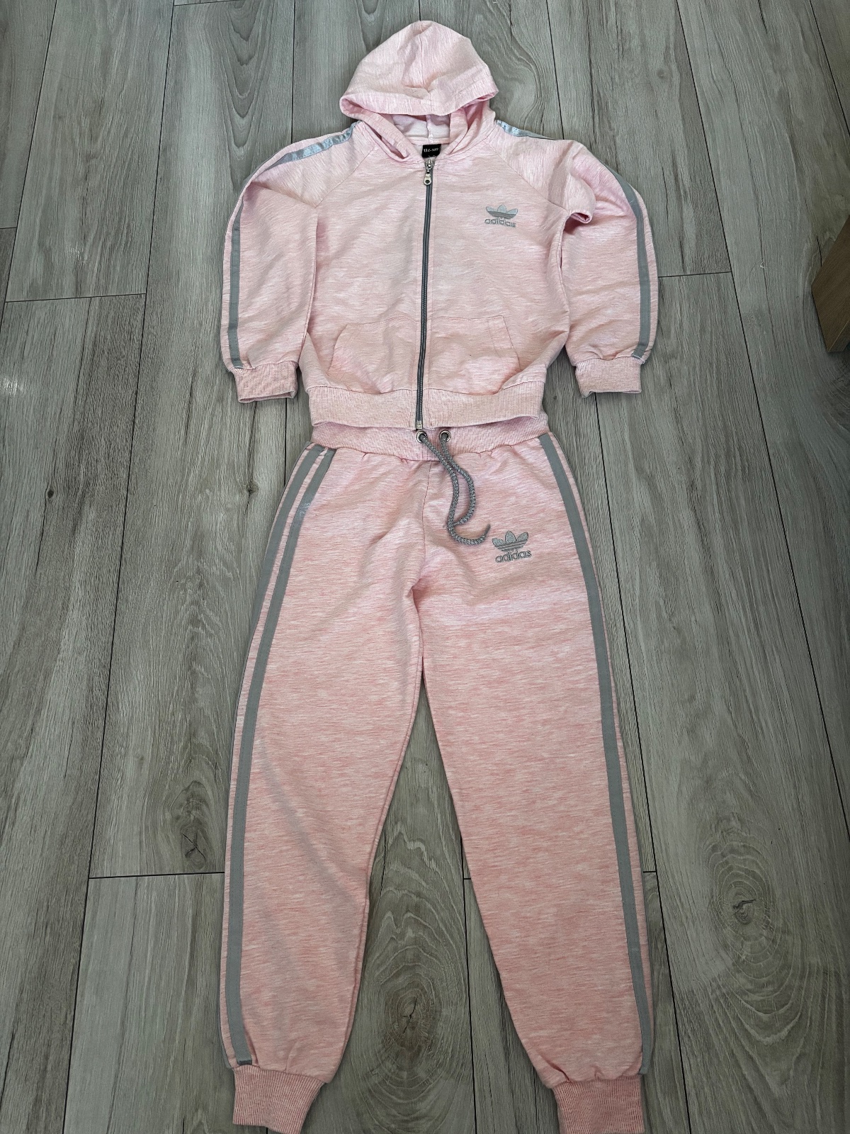 Ľahká tenká súprava, farba bledo ružová melírovana, dcéra ju mala rada v lete, ked sa vecer schladilo..