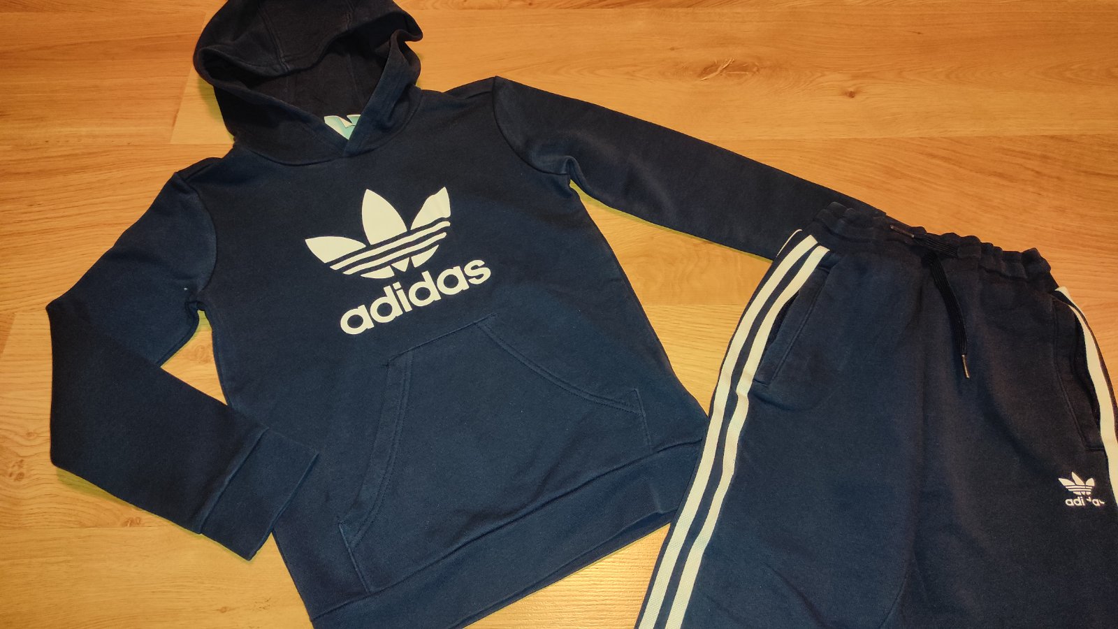 Ponúkam na predaj krásnu bavlnenú súpravu. V bezchybnou stave, nevyblednuta, bez zmolkov, osuchanych kolien a iných poškodení. Nosena do školy a aj vhodná do školy alebo bežné nosenie. Veľkosť písaná 128, ale dávam skôr pod 122 teplacky nosil syn do 7,5 roka, mikina v pohode aj do 8 rokov. Cena 20 eur.