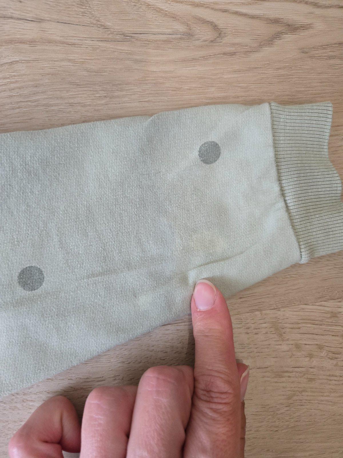 Pekný nosený stav, bez žmolkov , má jednu chybičku - na rukáve jemný vyblednutý fliačik, nie je veľmi vidno ... v skutočnosti krajšia zelená ako na fotke, tu to skôr vyzerá že je sivá, ale nie je