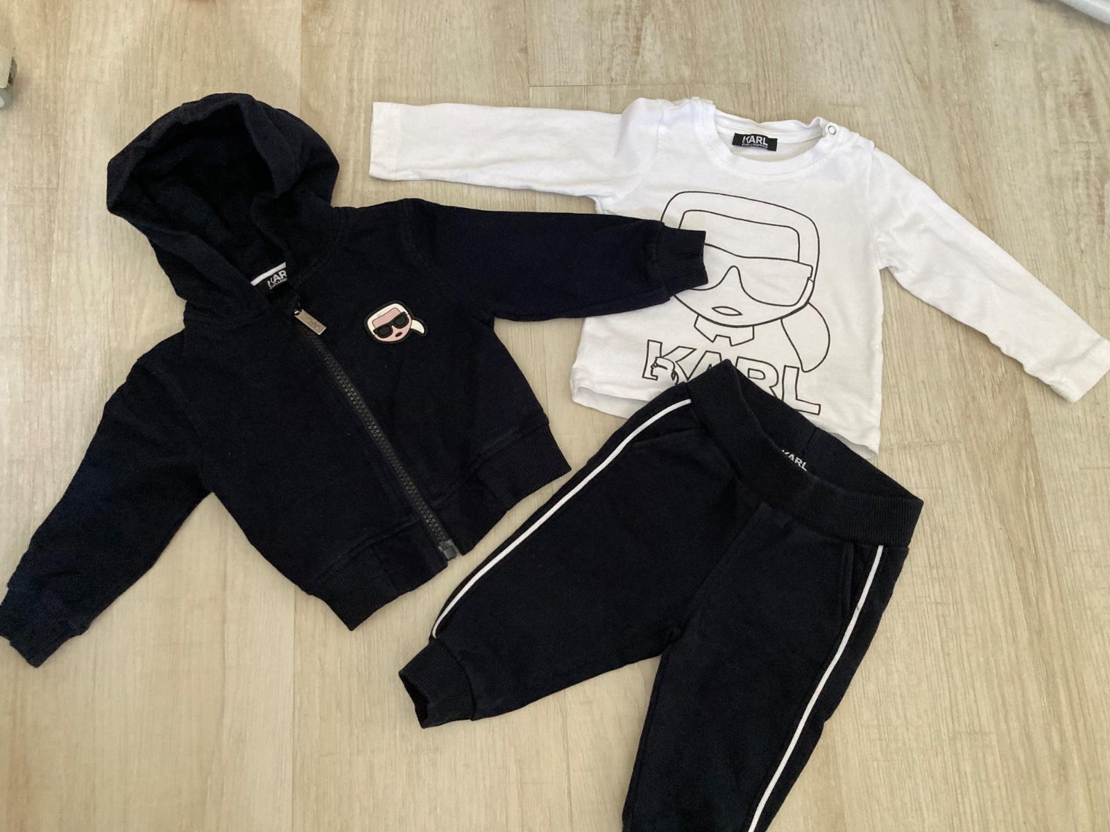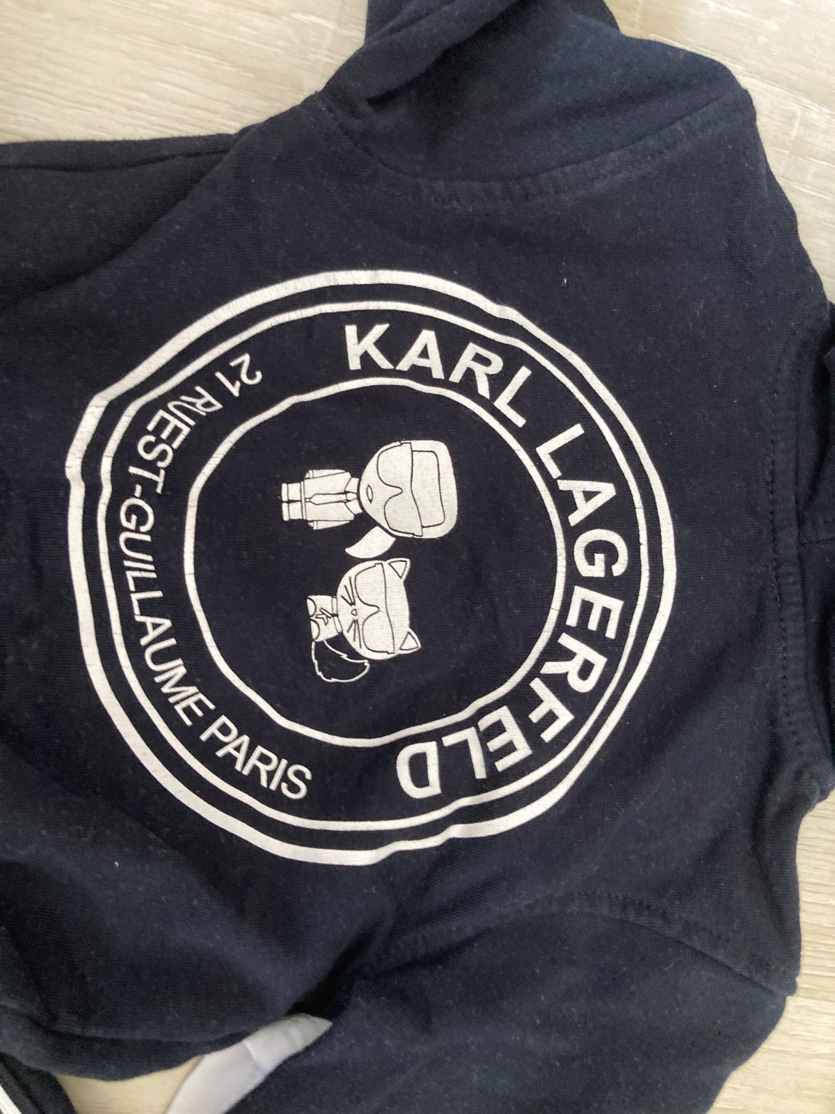 Super teplakova suprava, nie original Karl Lagerfeld velkost do 3 mesiacov. Pekny noseny stav. Pod pazuskami sa mikina zacala trochu parat vid foto.