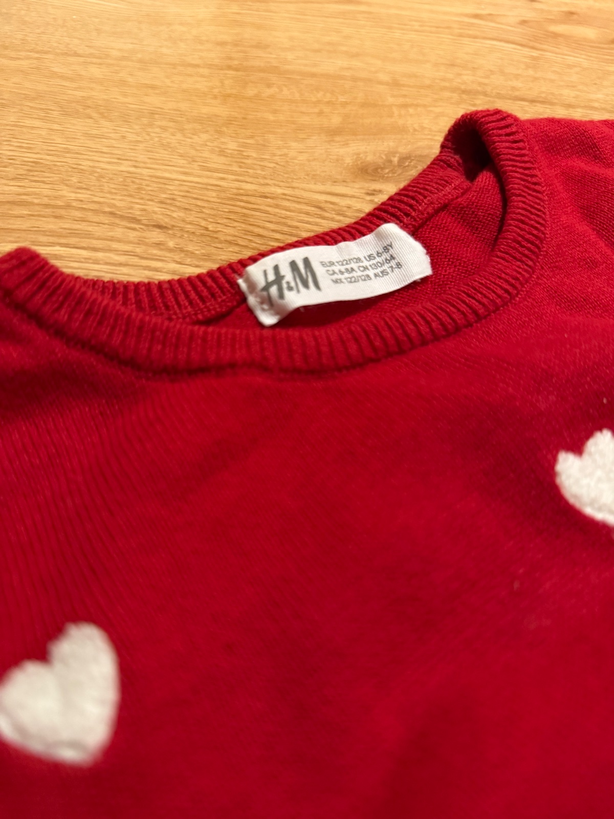 Prekrásna súprava červenej farby s bielymi srdiečkami. Pozostáva zo svetríka a sukničky z rovnakého materiálu. Veľmi pekne vynikne na postave. Oblečena max. 3x.