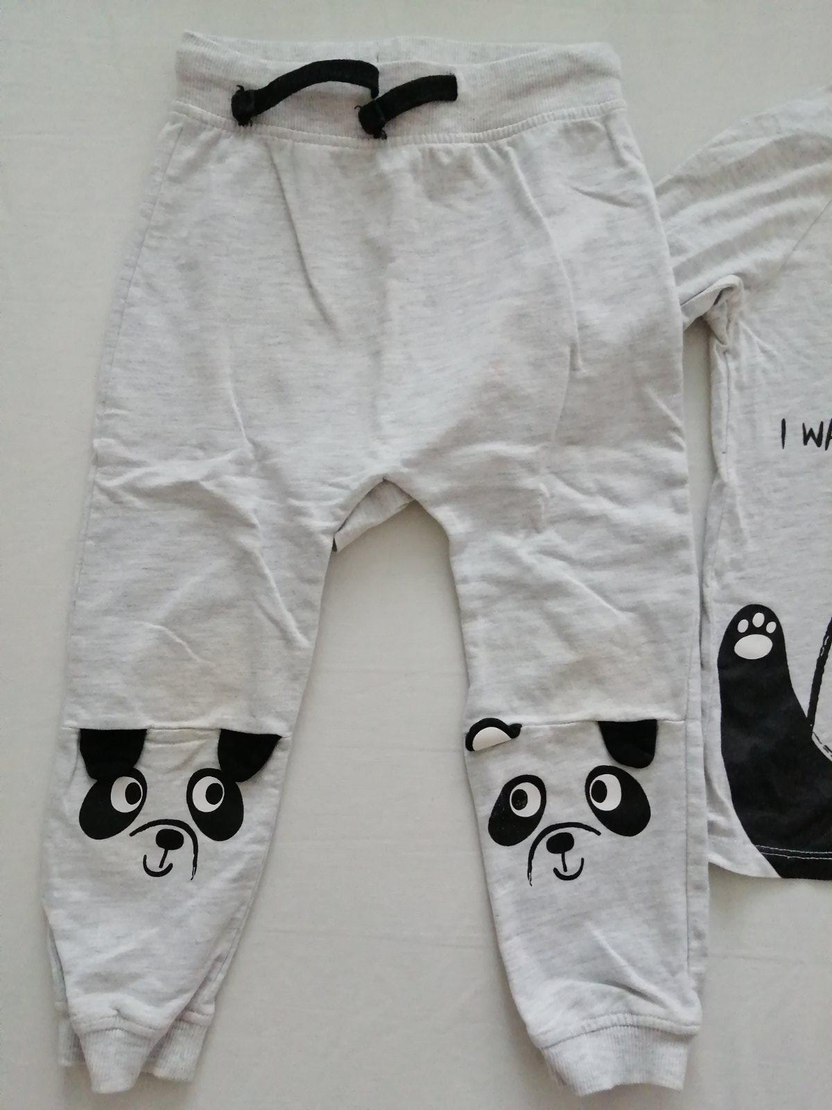 Nosena súprava, tepláky majú sfarbené kolienka a fliaciky, tričko je ok, na doma ešte super