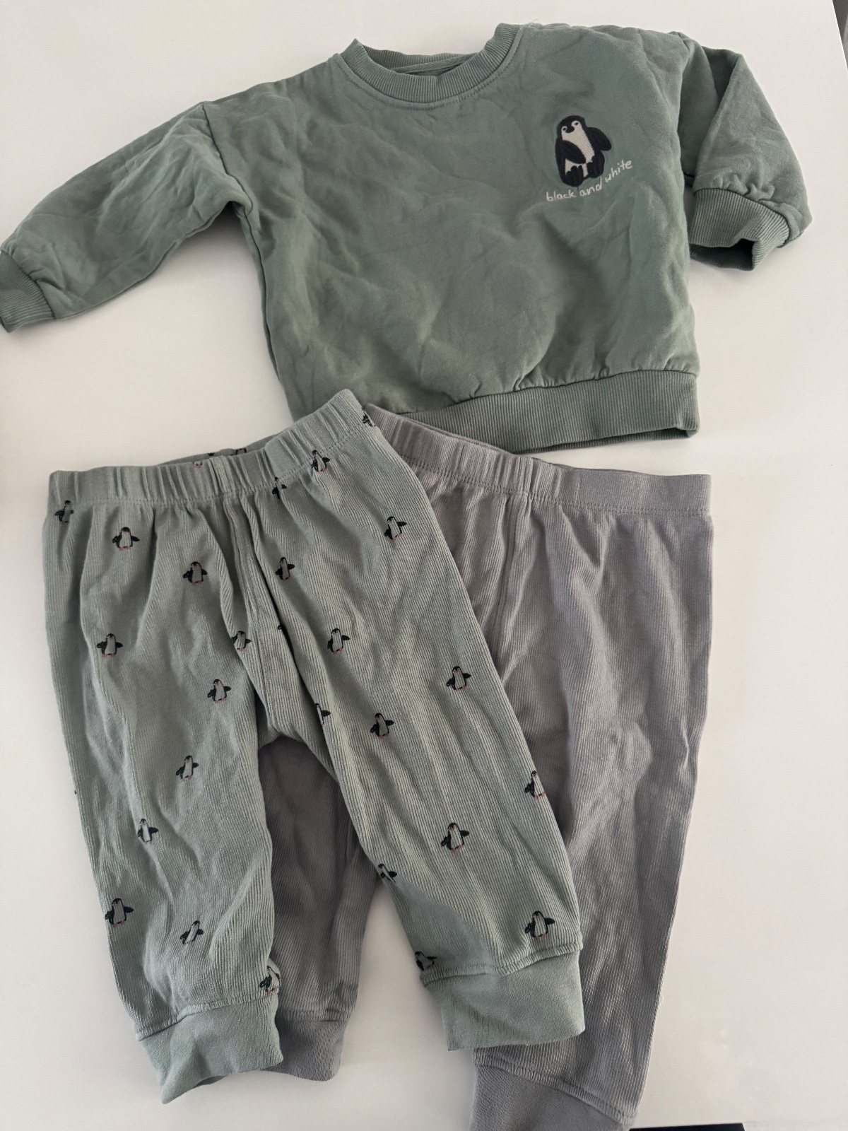 Predám detskú súpravu, zelenej farby s motívom srnky na hrudi. Zapínanie je na gombíky. Dobrý nosený stav. Veľkosť:80