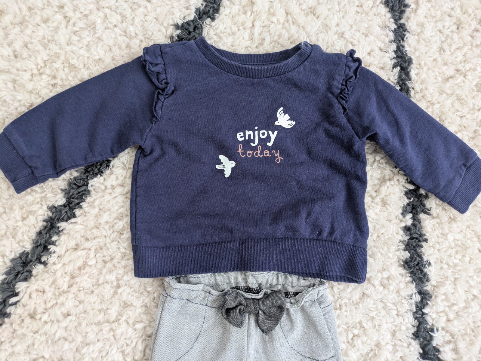 Predam nenosenu 4dielnu supravu pre dievcatko. Zahrna body, nohavice, ponozky, mikina s kapucou. Velkost 6 mesiacov. Vhodna na jar, leto, skora jesen. Tensi bavlneny material.
