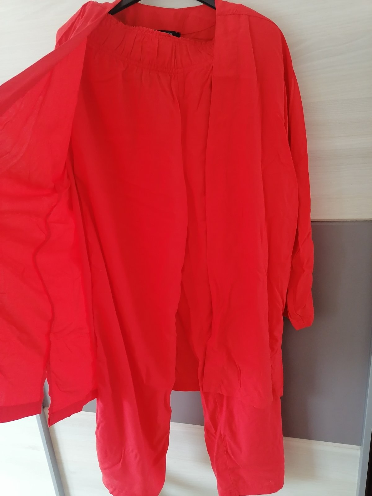 Krasny komplet nohavice a taky ako blejzer, ja som mala k tomu nachystany biely croptop, ale nakoniec som ho nemala obleceny
