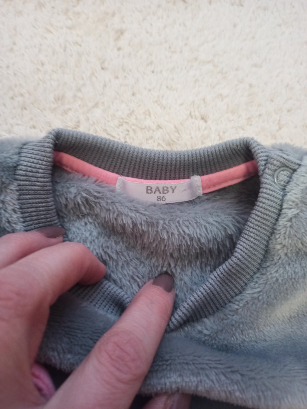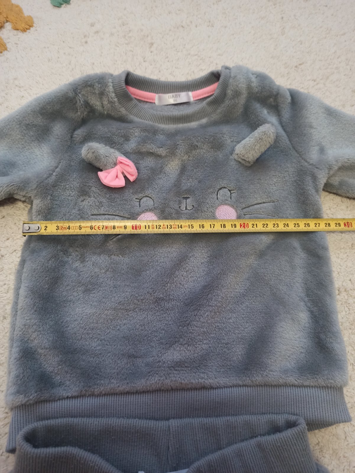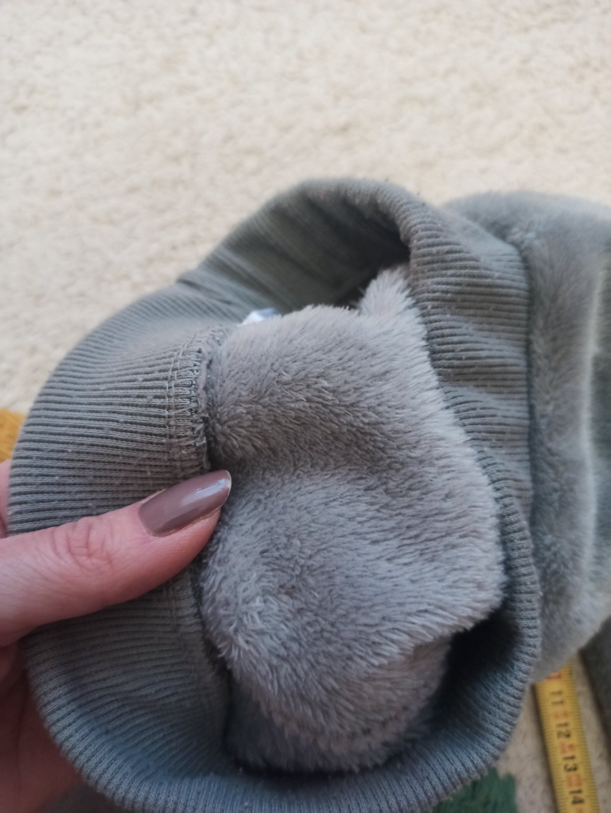V peknom nosenom stave,hrubo zateplená mikina aj tepláky,na teplákoch chýba šnúrka