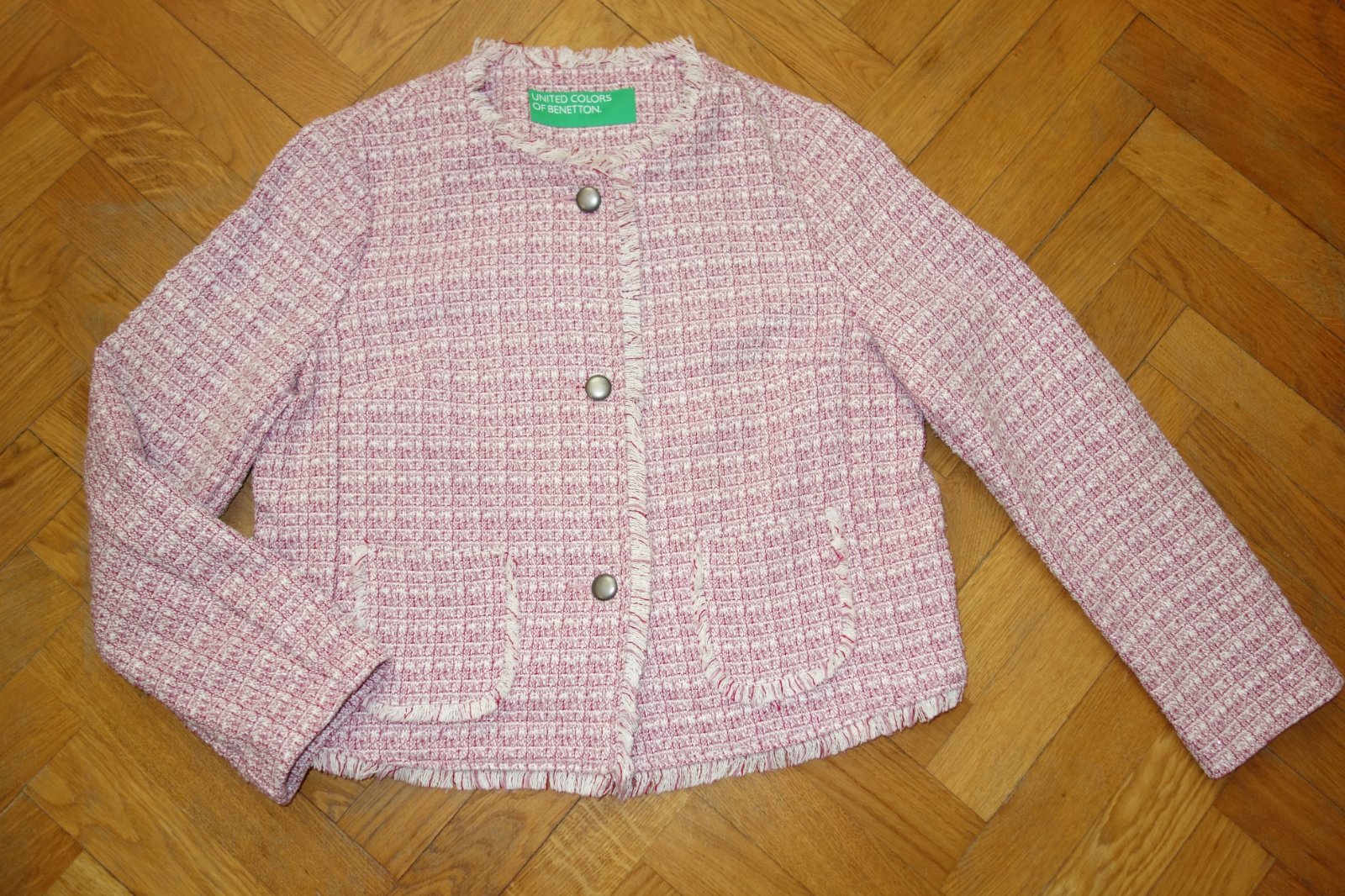 Sako nepodšité, dĺžka 53 cm, šírka pod pazuchami 53 cm, rukáv od pleca 60 cm.
