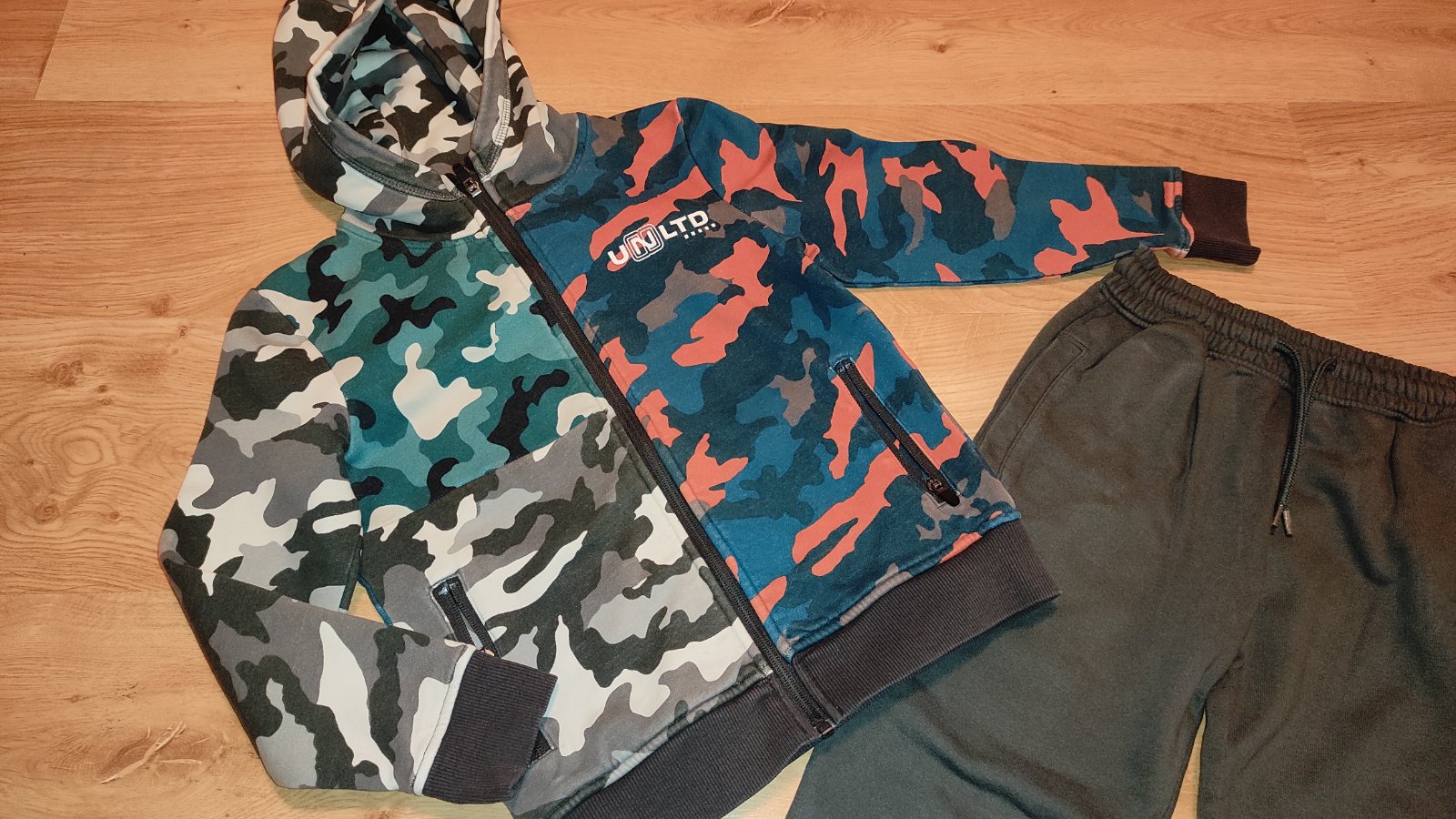 Ponúkam na predaj peknú bavlnenú tepláková súpravu. Nosena do školy, ale v bezchybnou stave, nevyblednuta, bez zmolkov, kolená neosuchane. Sedí aj na 122 ale v pohode aj na 128. Cena 14 eur.