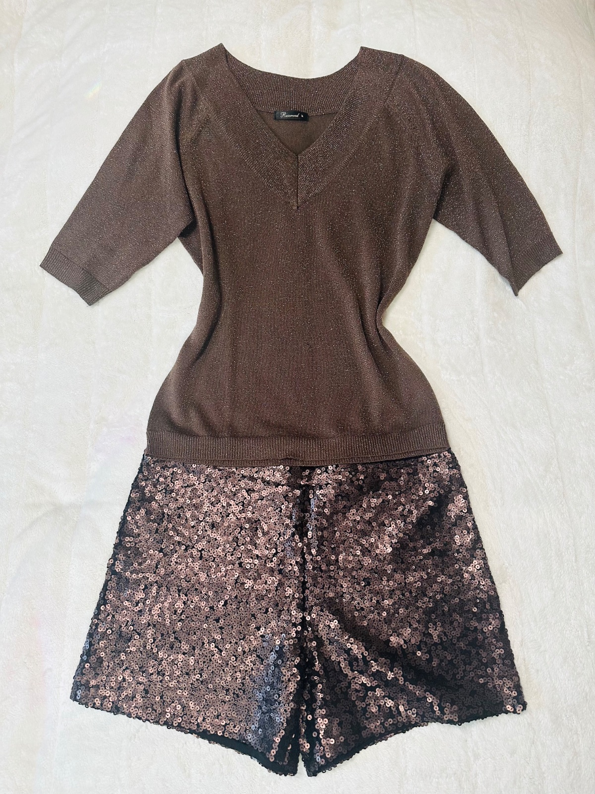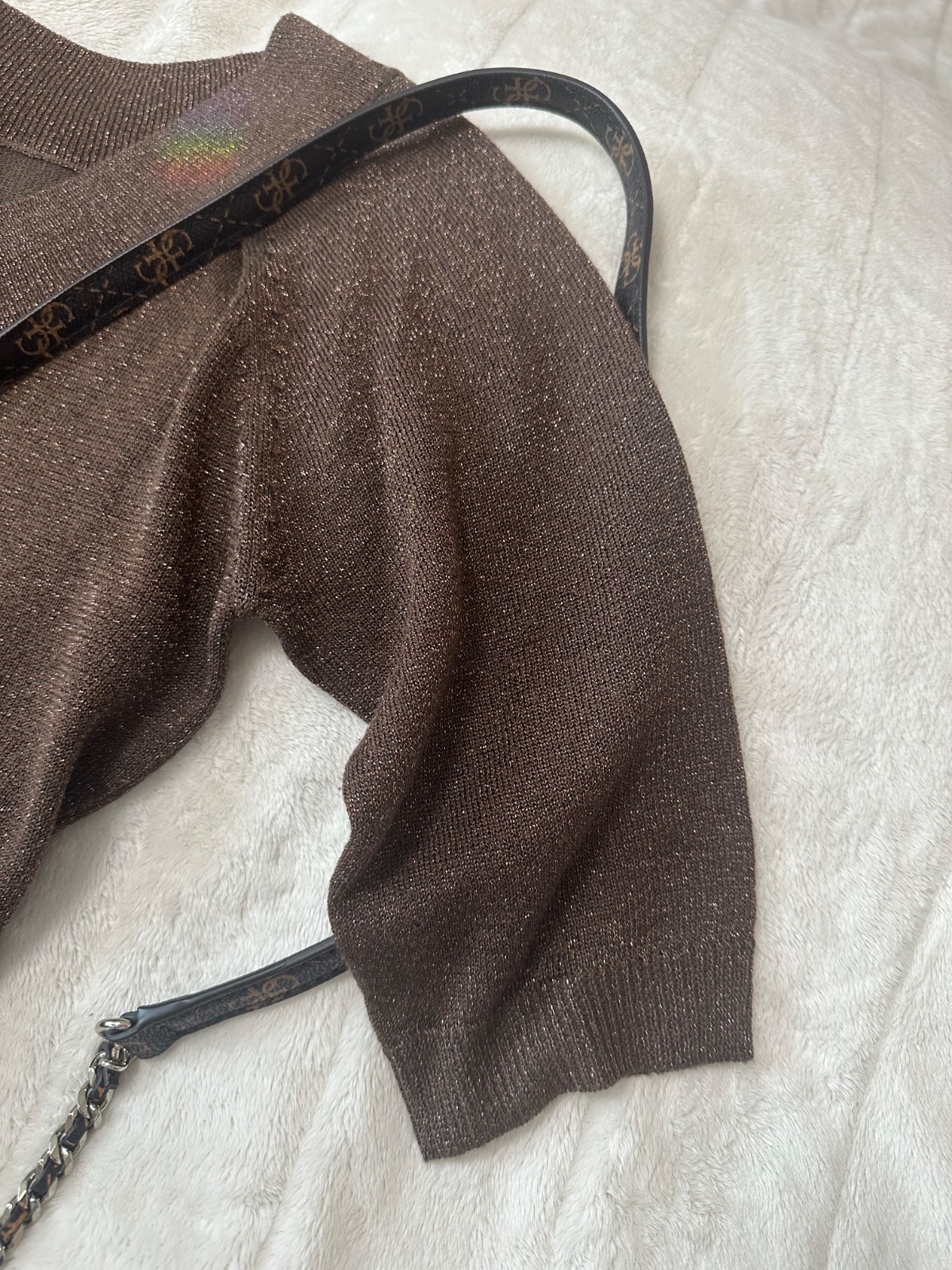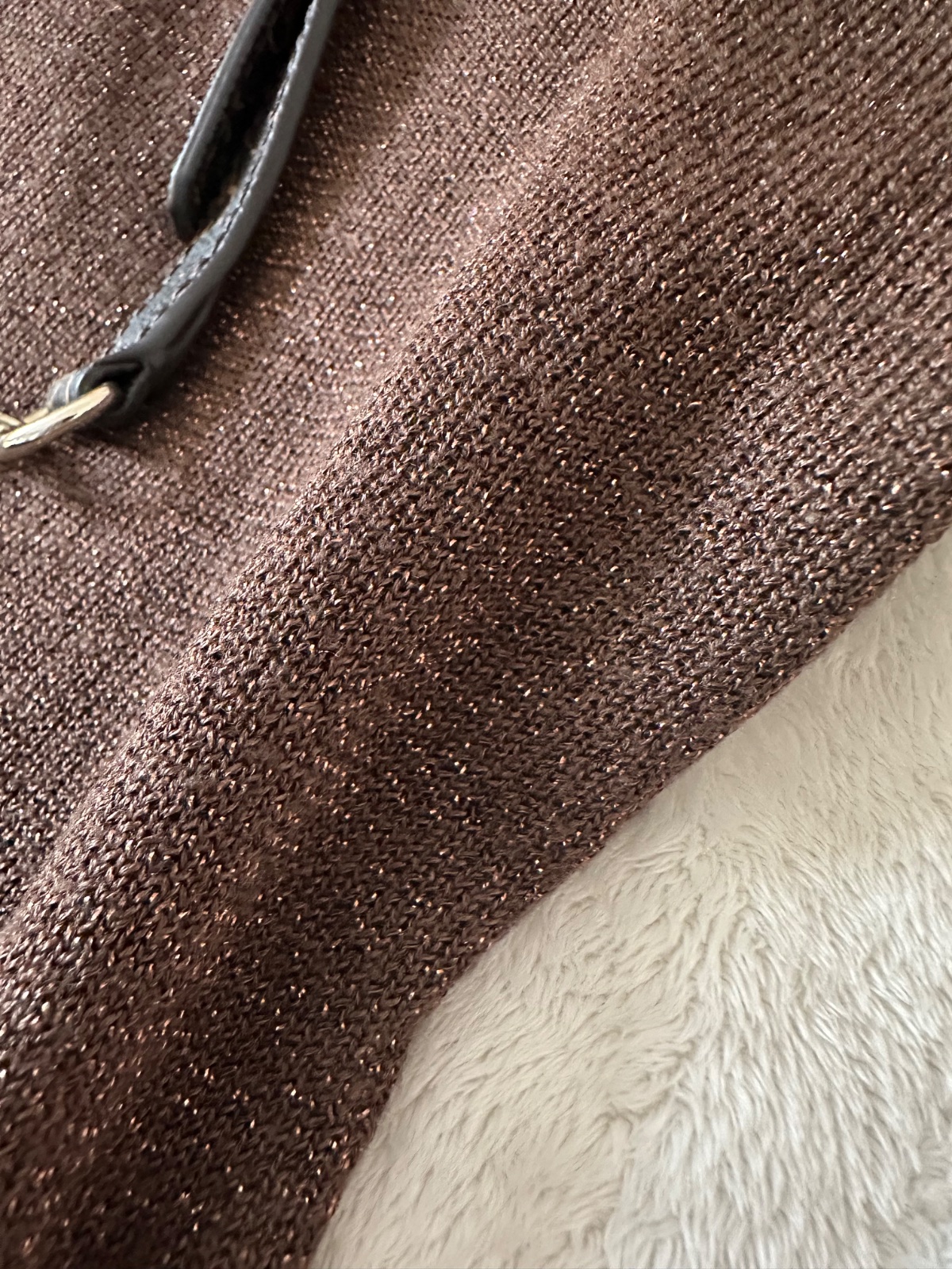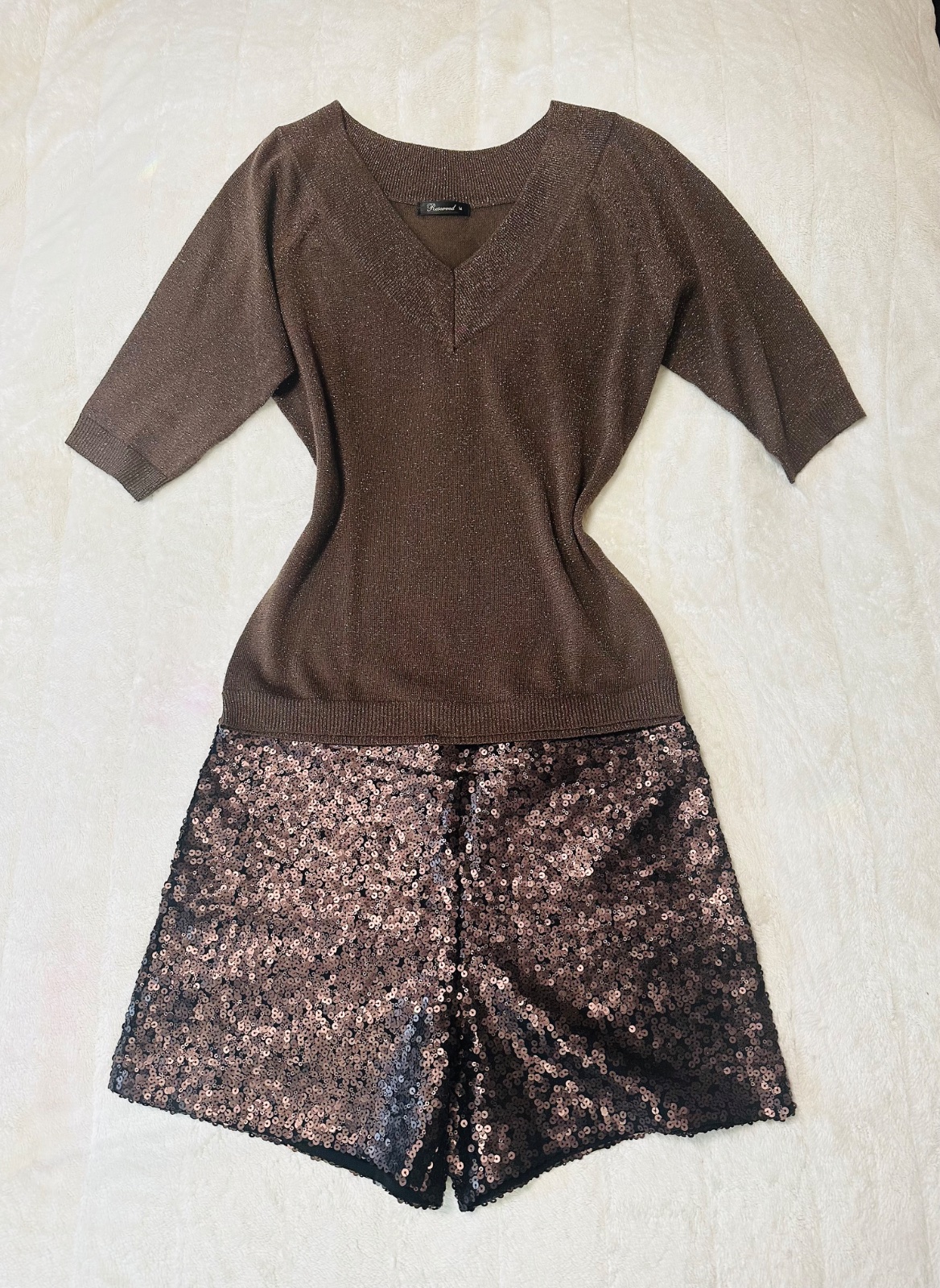 Svetrík lurex zn. Reserved tmavohnedá s medenou lesklou niťou