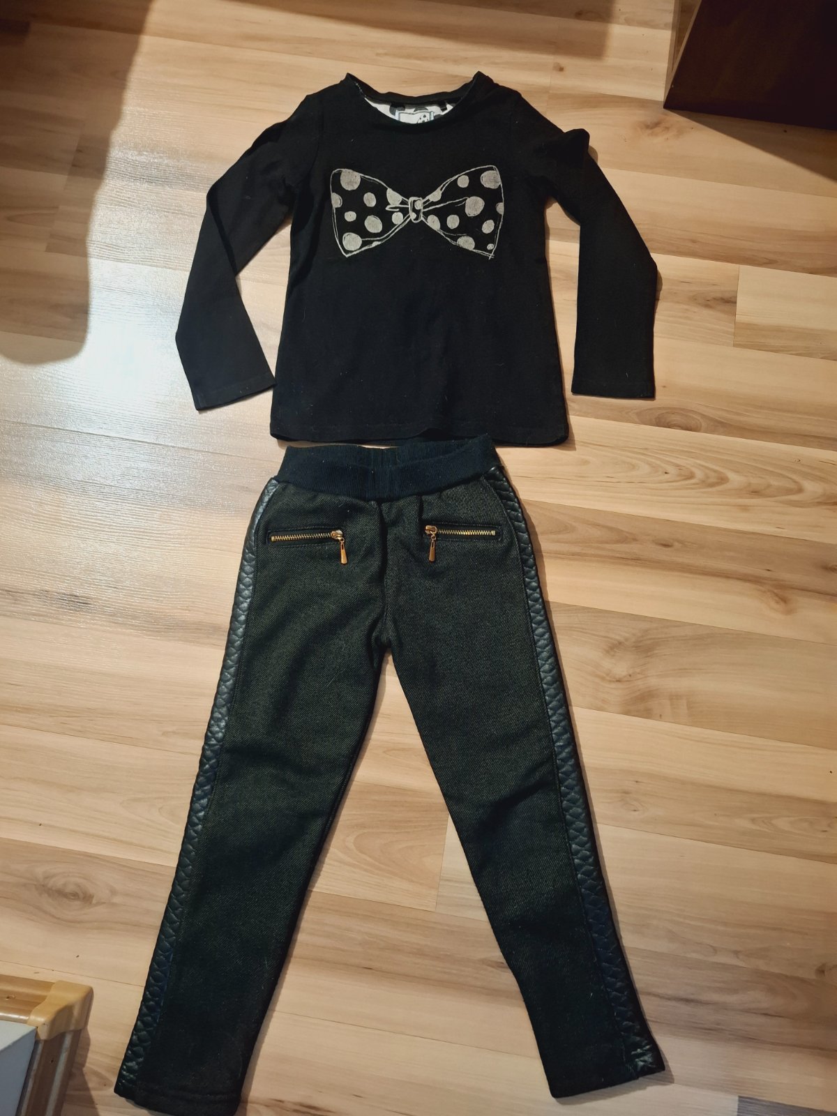 Tričko s mašľou next , legíny zateplené po boku imitácia kože dobrý stav