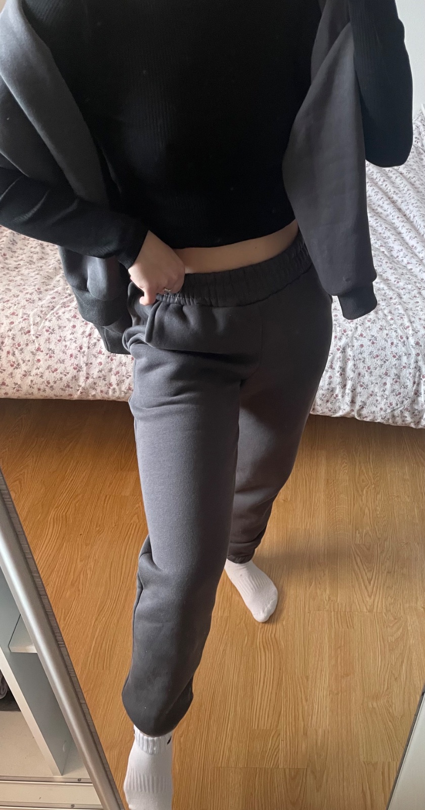 Nosená, má aj menšie žmolky, na nosenie po dome vhodná, TEPLÁKY: ukončenie na patent, pás gumička, na bokoch vrecká. ROZMERY: CD 98cm, vnútorná dĺžka72cm, pás 2 x 39cm, natiahnutý 2 x 54cm MIKIN...