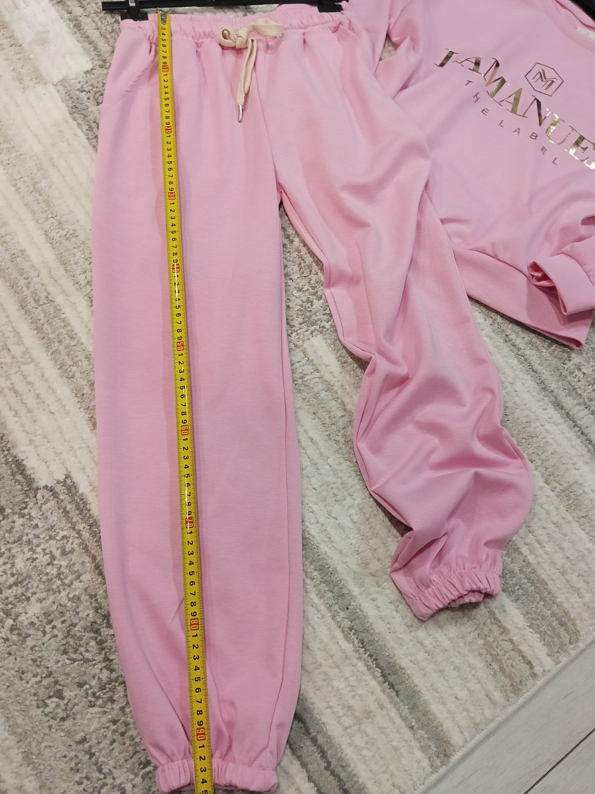 Predám nádherný luxusný kúsok Italy moda, výborný padavy materiál, žiadny nepríjemný polyester, taký maslový jemný materiál, krásny trblietavý napis, súprava je UNI sedí na S,M,L,menšie XL. mikina je oversized tak S má voľnejší strih.