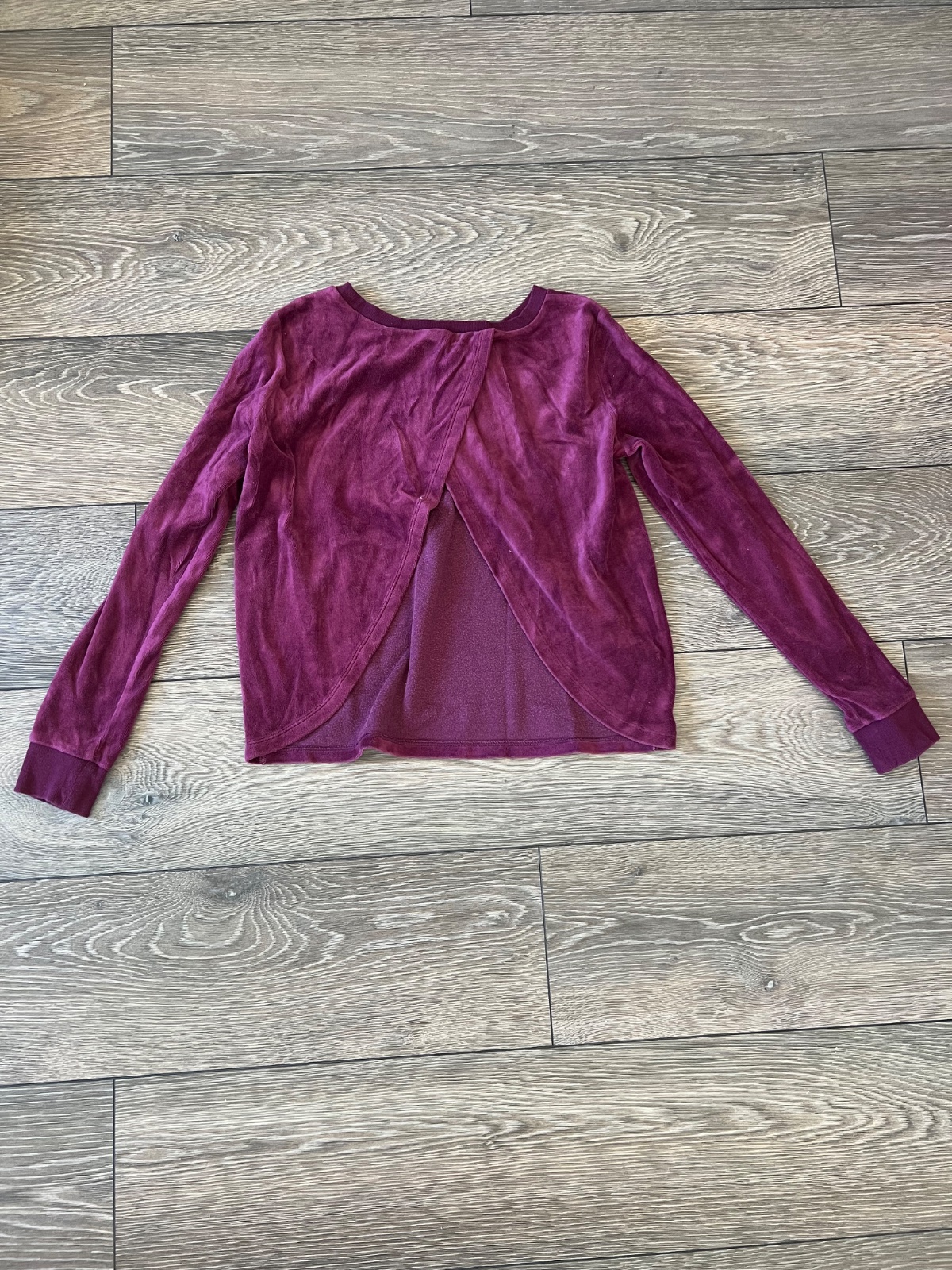 Burgundy vínová súprava tričko a legíny. Tričko je z ľahkej priesvitnej svetríkoviny s koženkovou aplikáciou na ramenách a zlatými detailami. Velkosť S Legíny teplákovina vzadu a vpredu koženkový d...