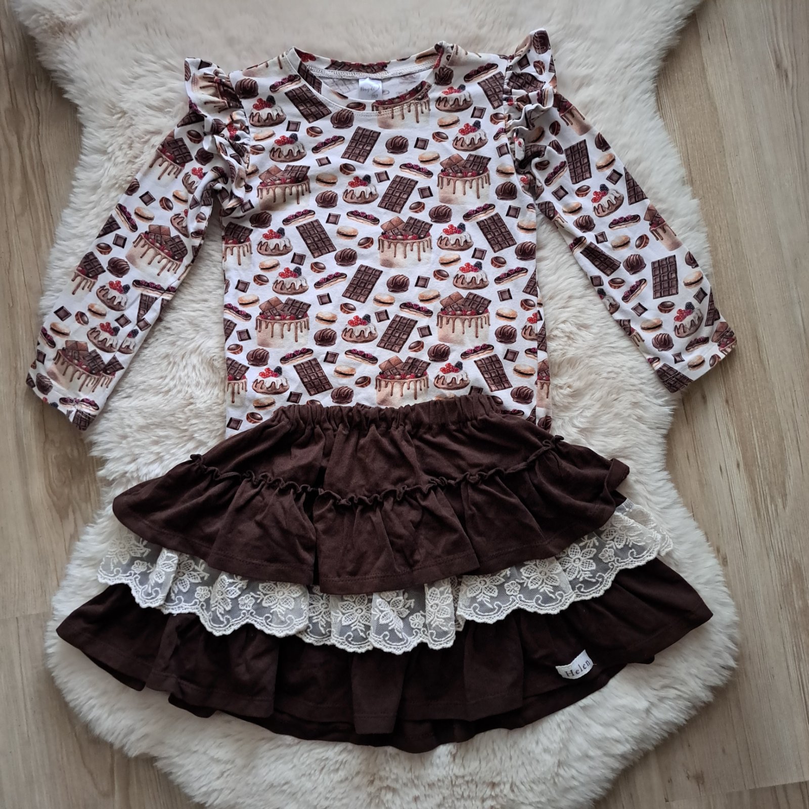 Suknička Helen s topom Haydi, krásny stav, párkrát na sebe. Na chrbátiku popísané od pera, neskúšala som odstrániť, zohľadnené v cene.