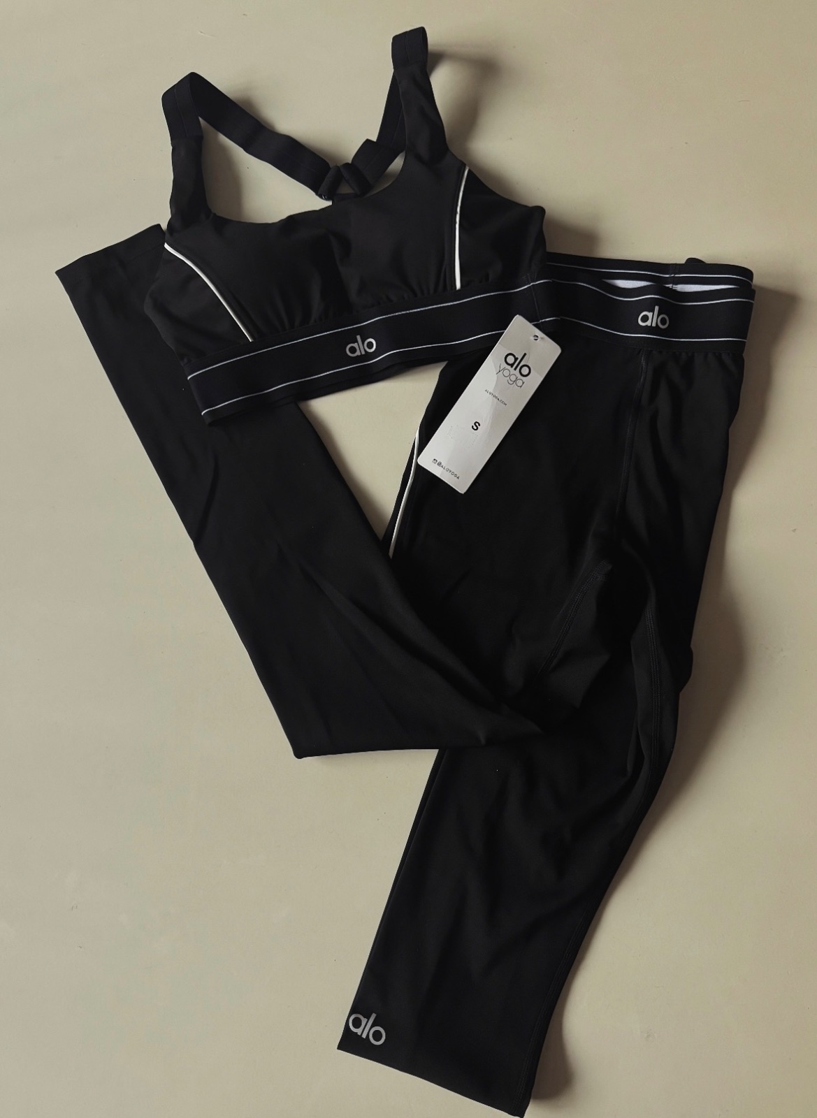 Dámsky športový set Alo Yoga v čiernej farbe. Nový ešte s visačkou. Veľkosť uvedená S ale sedí na menšie, takže XS. Veľmi príjemný a pohodlný športový materiál.