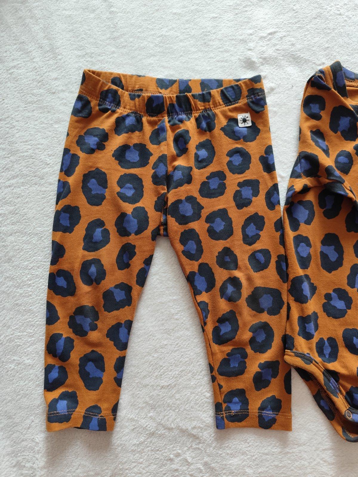 Komplet: sako bundička a legíny. Raz oblečená bundička ( sako) 100% polyester, saténové rukávy a chrbát, vpredu flitrová aplikácia. Rozmery: dĺžka 55cm, širka pod pazuchami 46cm, rukáv od krku 71c...