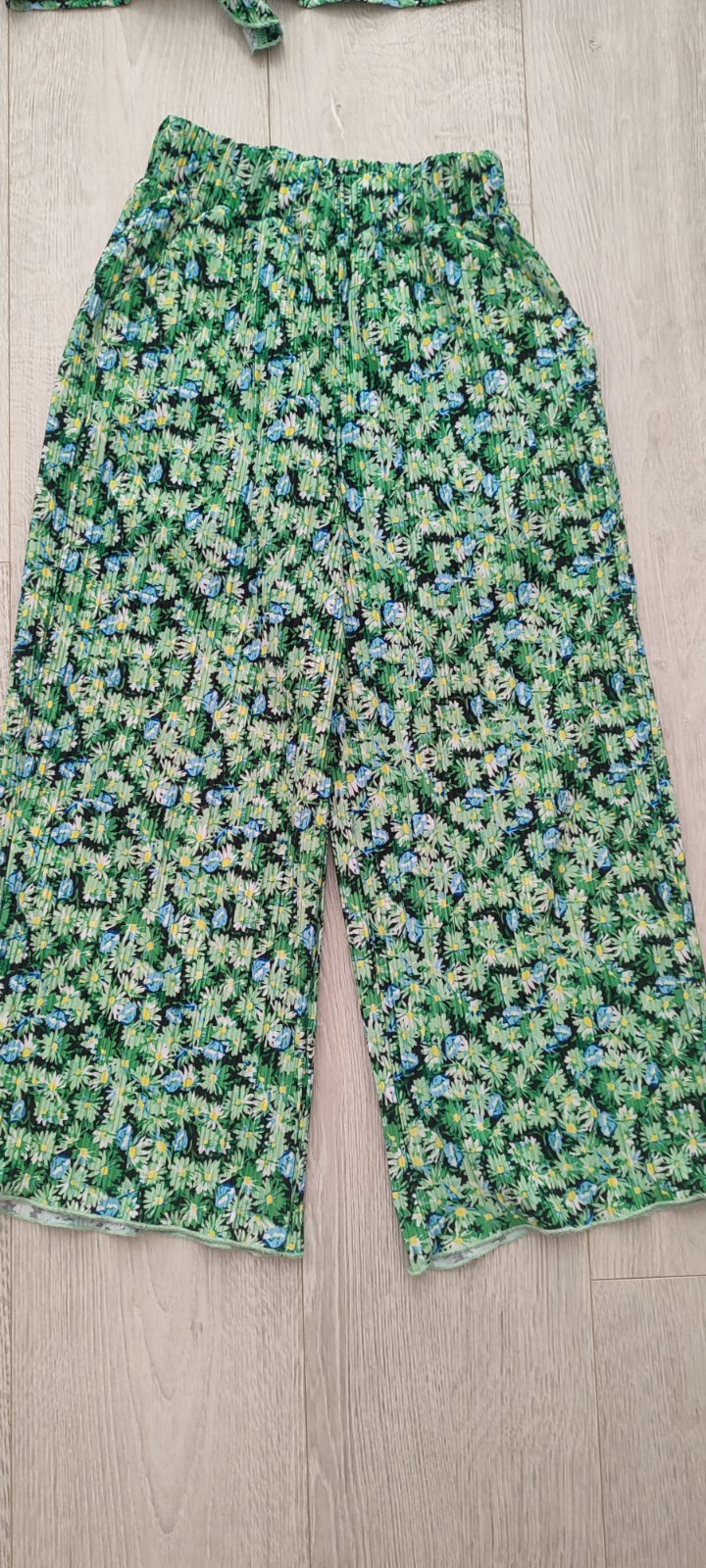 Krásny letný komplet, vhodný na každú príležitosť,moderný rovný strih nohavíc, ktoré majú bočné vrecká,nekrciva latka
