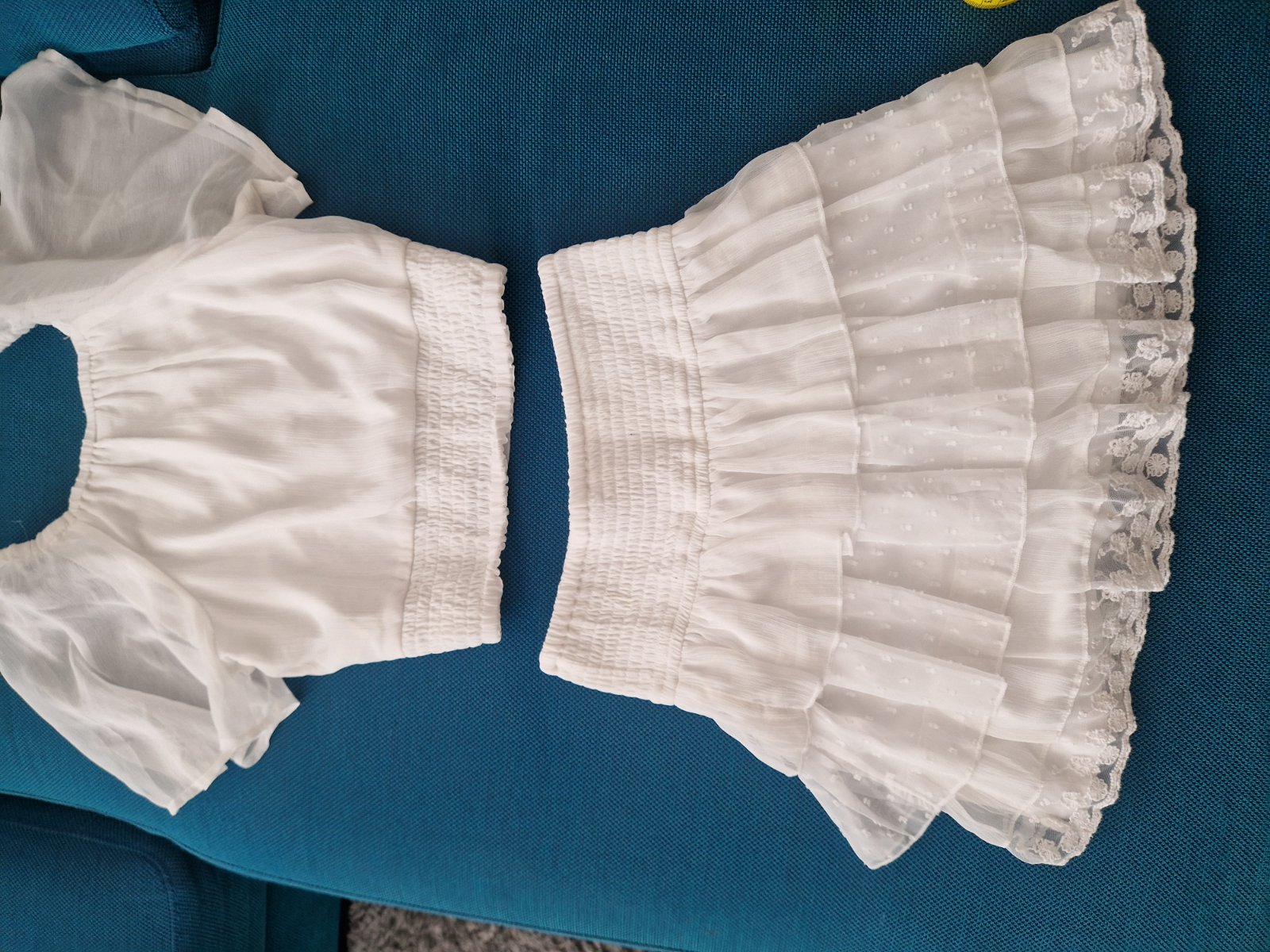 Predam supravu cropp bluzka + sukna. Farba je svetla maslova. 146/152