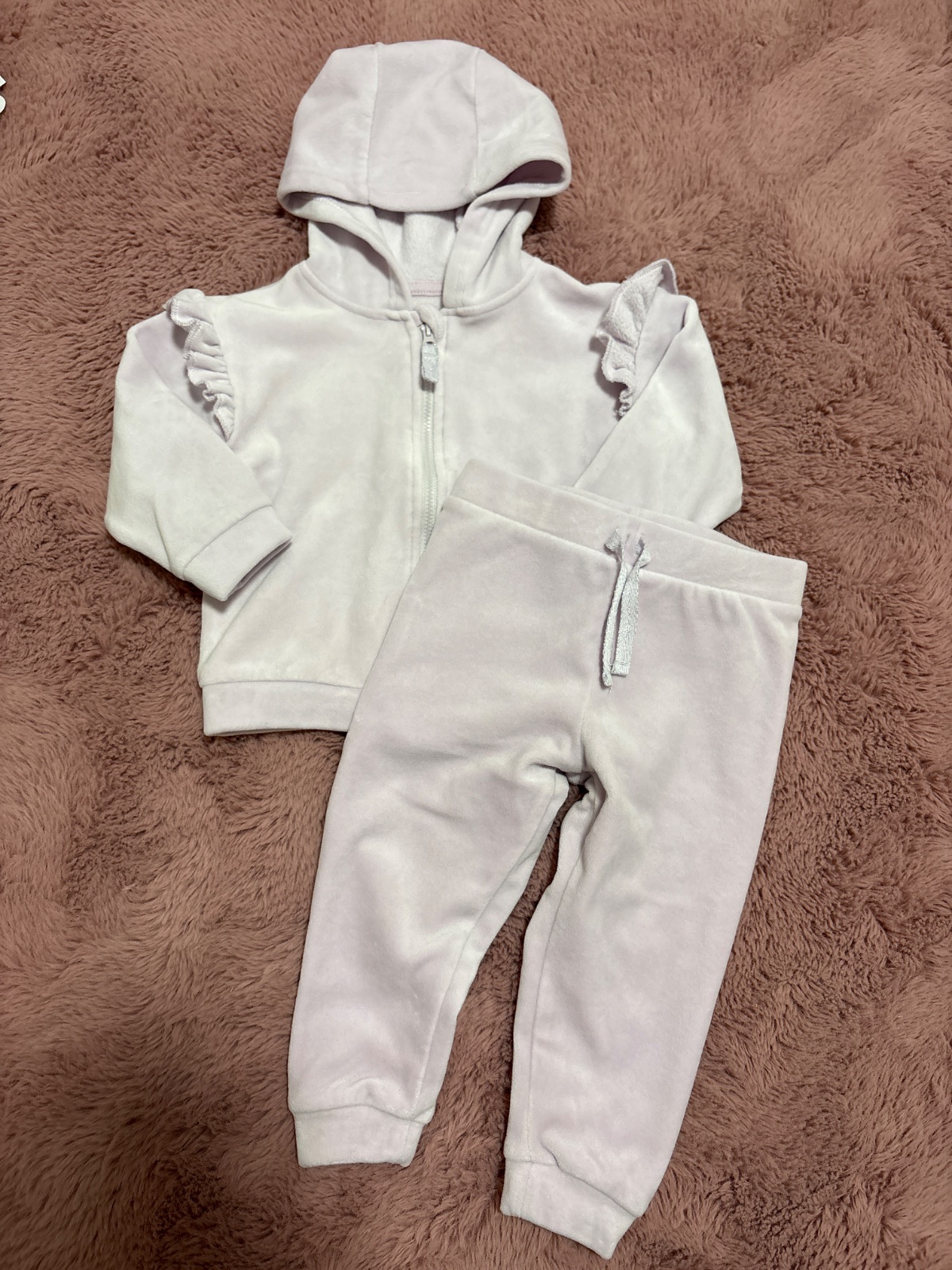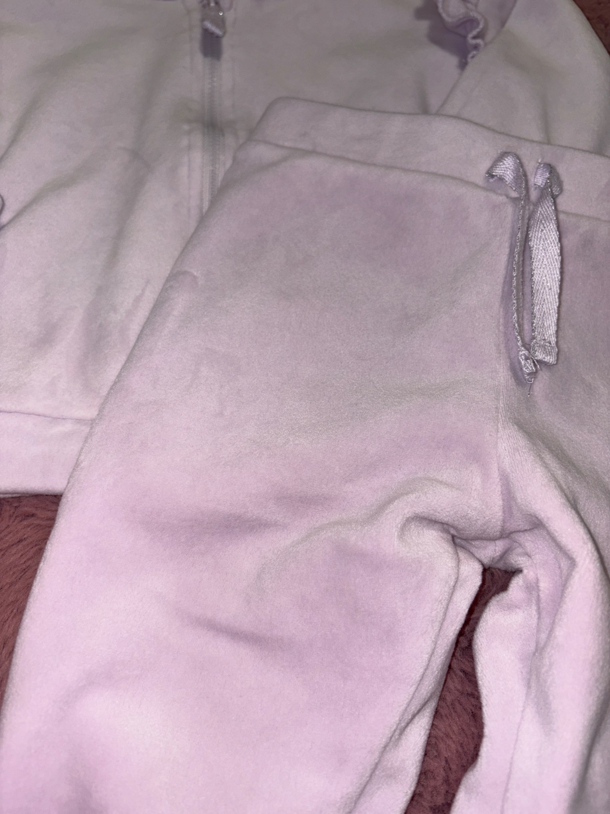 Predám fialovú teplákovú súpravu, veľmi príjemný velúrový materiál. V tejto veľkosti predávam aj ružovú. Nosili sme na striedačku. Dĺžka mikiny 38 cm, šírka mikiny 32 cm a rukáv od kapucne 36 cm. D...