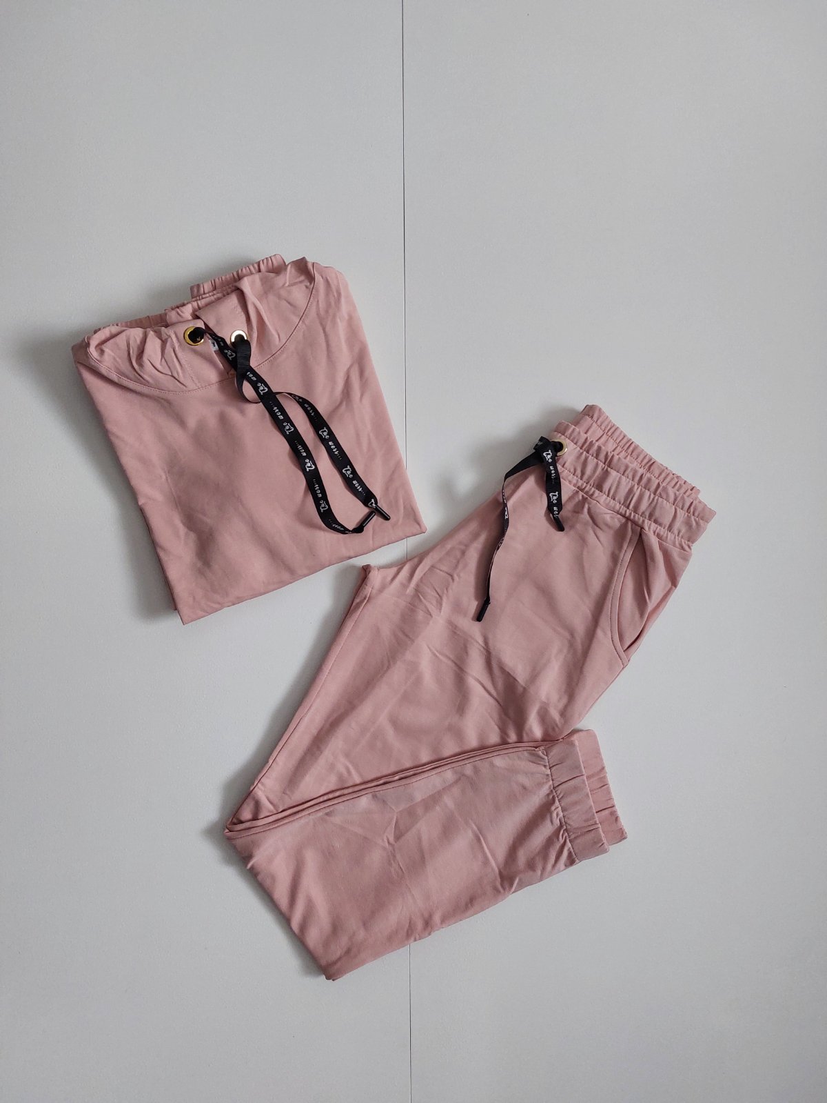 Dámska tepláková súprava z bavlneného materiálu. Veľmi príjemná, elastická. Mikina má vpredu vrecká. Farba svetloružová. Veľkosť: S, M, L. V prípade záujmu pošlem rozmery.