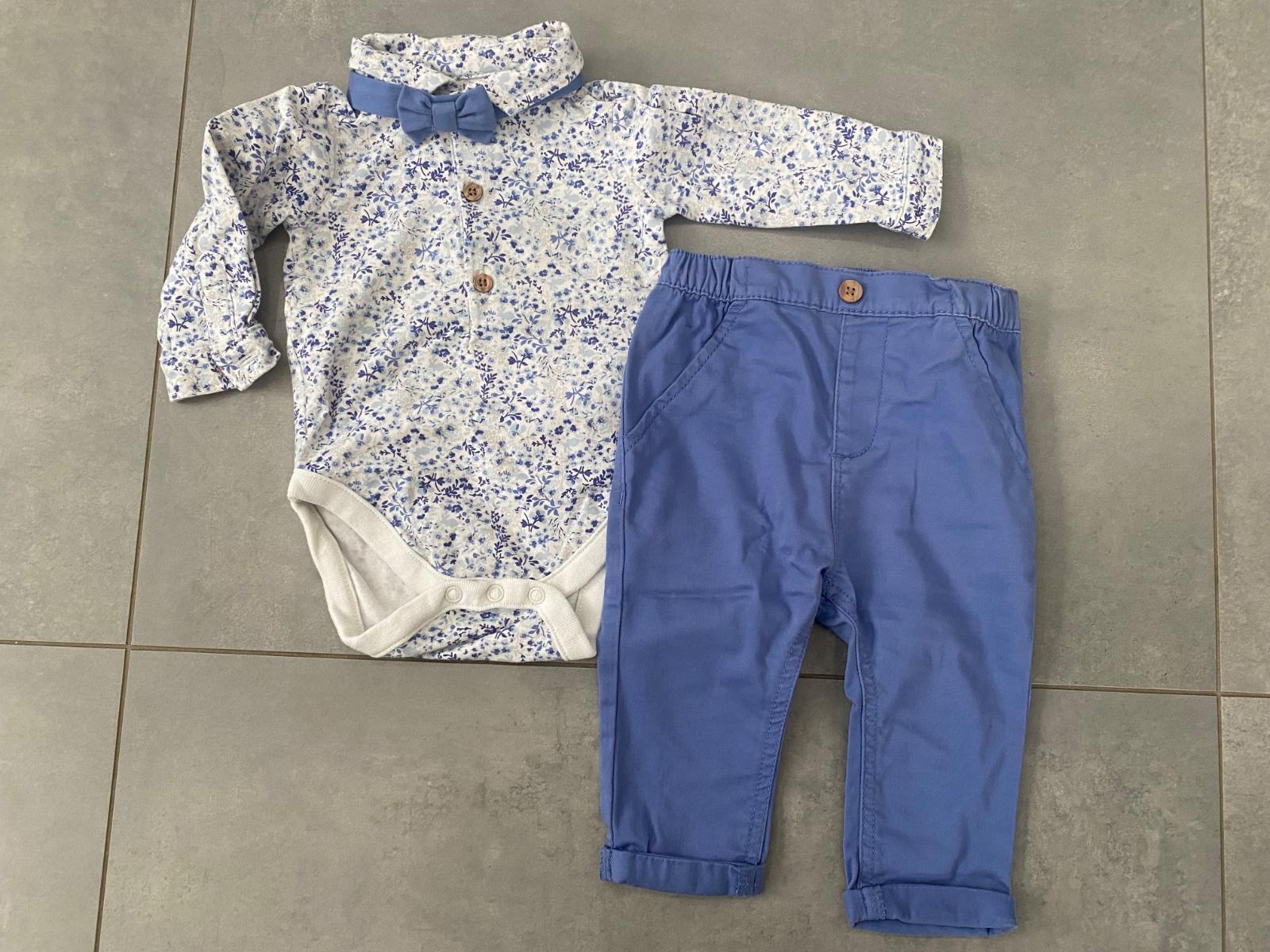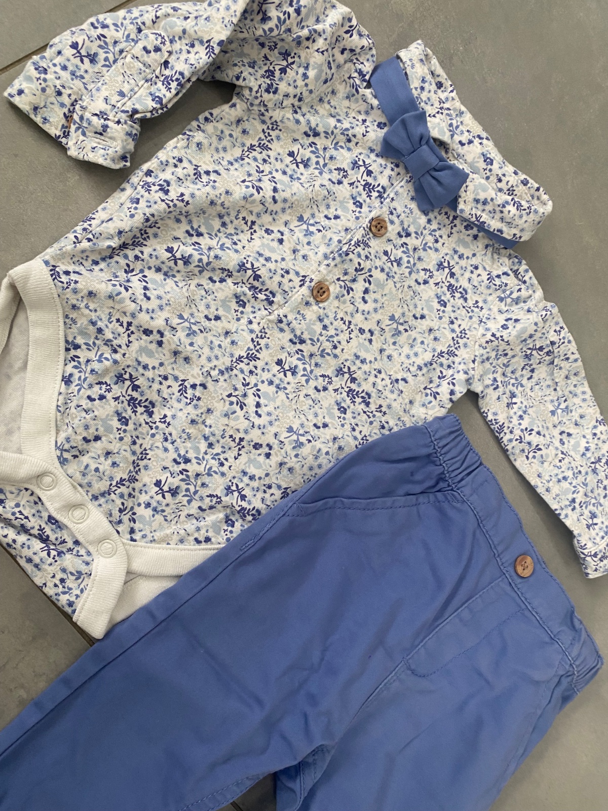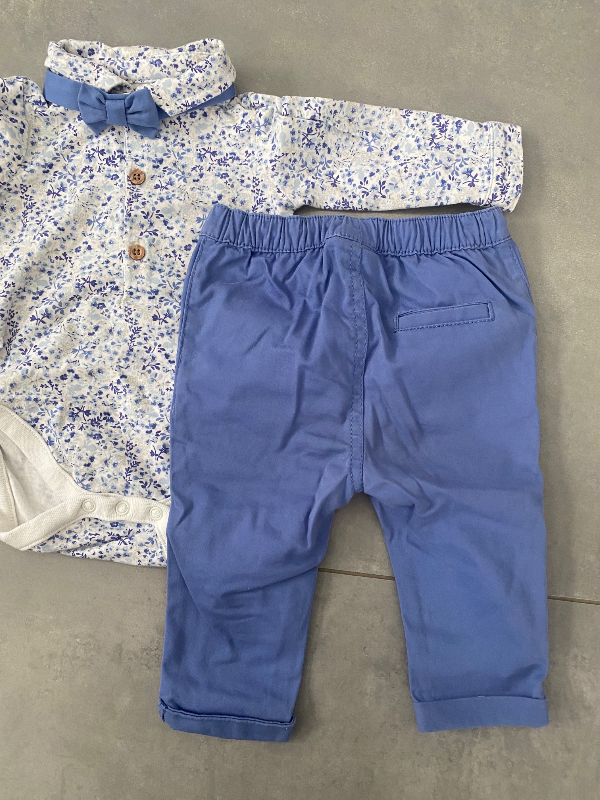 SKLADOM 3 dielny bavlnený set Next, košeľové body, traky a nohavice - všetko samostatné plnohodnotné kusy, veľkosť písaná ako 3-6 mesiacov, vhodná aj na slávnostné využitie. Kód 716219. TOVAR JE...