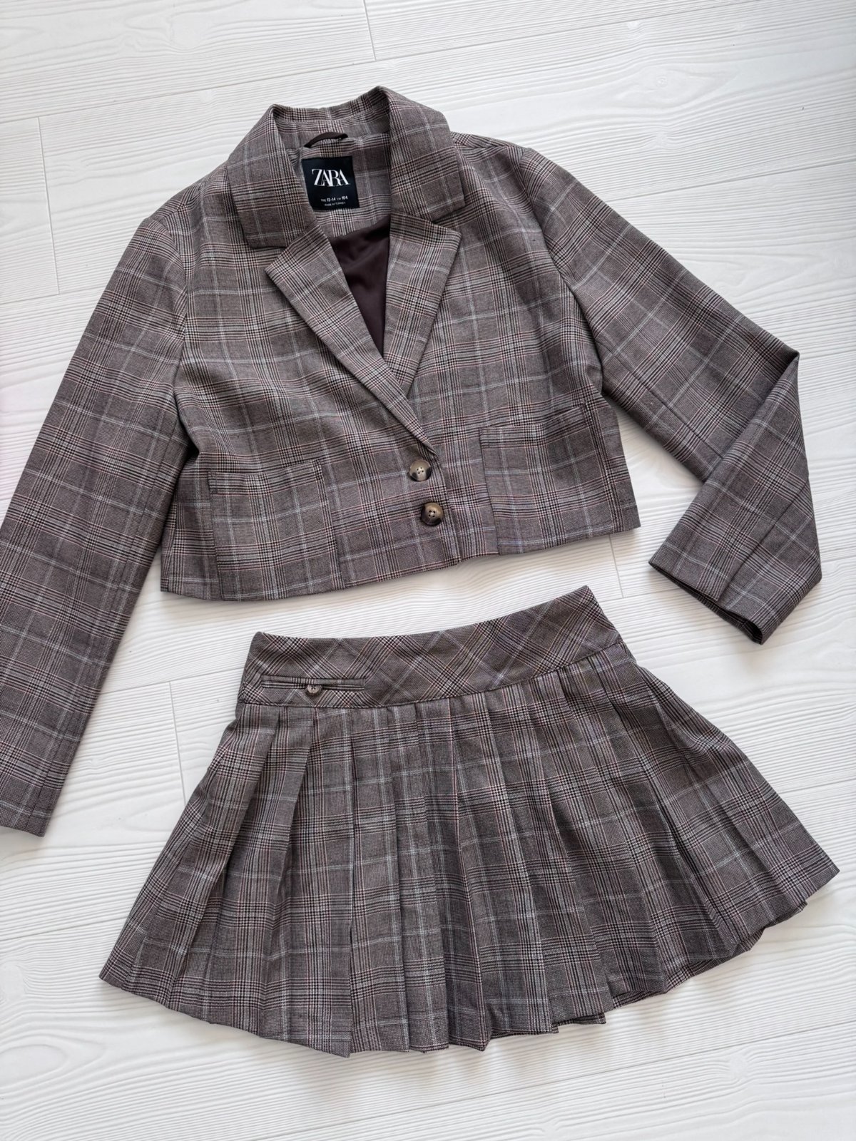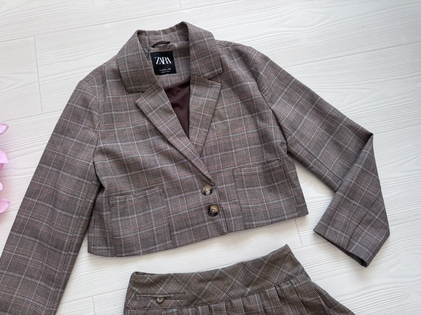 Skrátené sako s golierom s chlopňami a dlhými rukávmi. Zapínanie na gombíky vpredu.