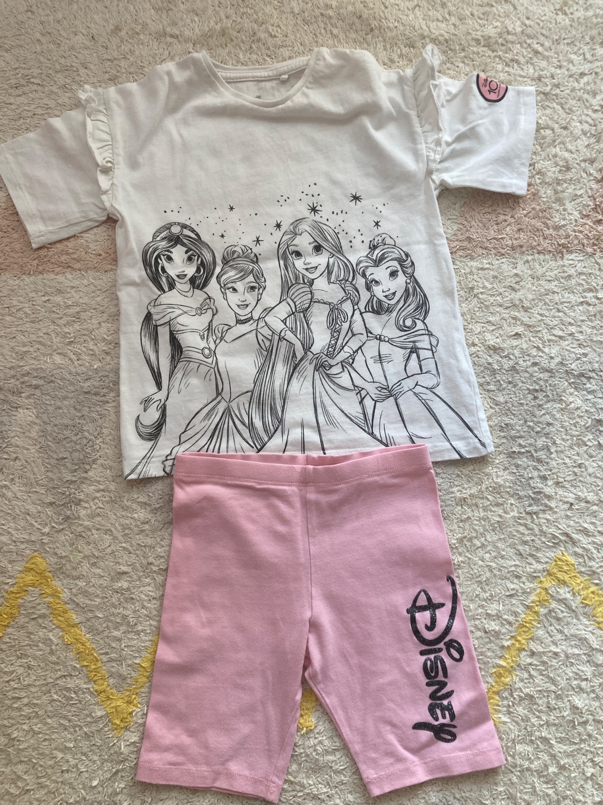 Ponukam na predaj letnú súpravu od FaF s potlacou Disney princezny. Na kraťasoch cierny trblietavy nadpis Disney. Velkost na visacke 110, sedí. Po jednom dietati. Bez poškodeni.