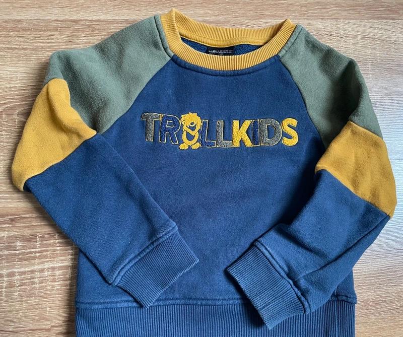 Ponúkam 2x mikinu s tričkom. Zn. Trollkids. Tmavo-zelená veľ. 116 dĺžka 44cm, šírka 38 cm., rukáv od krku 47 cm, modrá veľ. 110, dĺžka 41 cm, šírka 31 cm, tyrkysové tričko dĺžka 46 cm, šírka 31 cm, darujem veľ. 110.