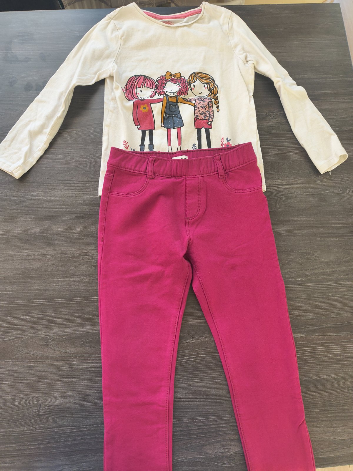 Veľmi pekná mikina dlhšieho strihu, tak po zadok , bola s legínami v sete...má zlatú aplikáciu...6-7 rokov Rukav od krku 48,5 cm Dlzka od ramena je 47, 5 cm Sirka je 38 cm + teplejšie legíny k to...