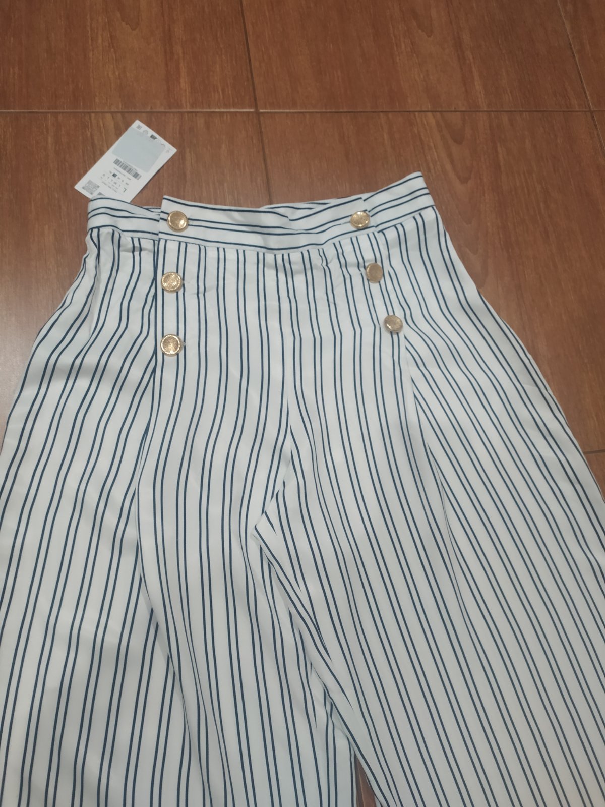 Nohavice nové s visačkou,rozšírené,zdobené zlatými gombíkmi