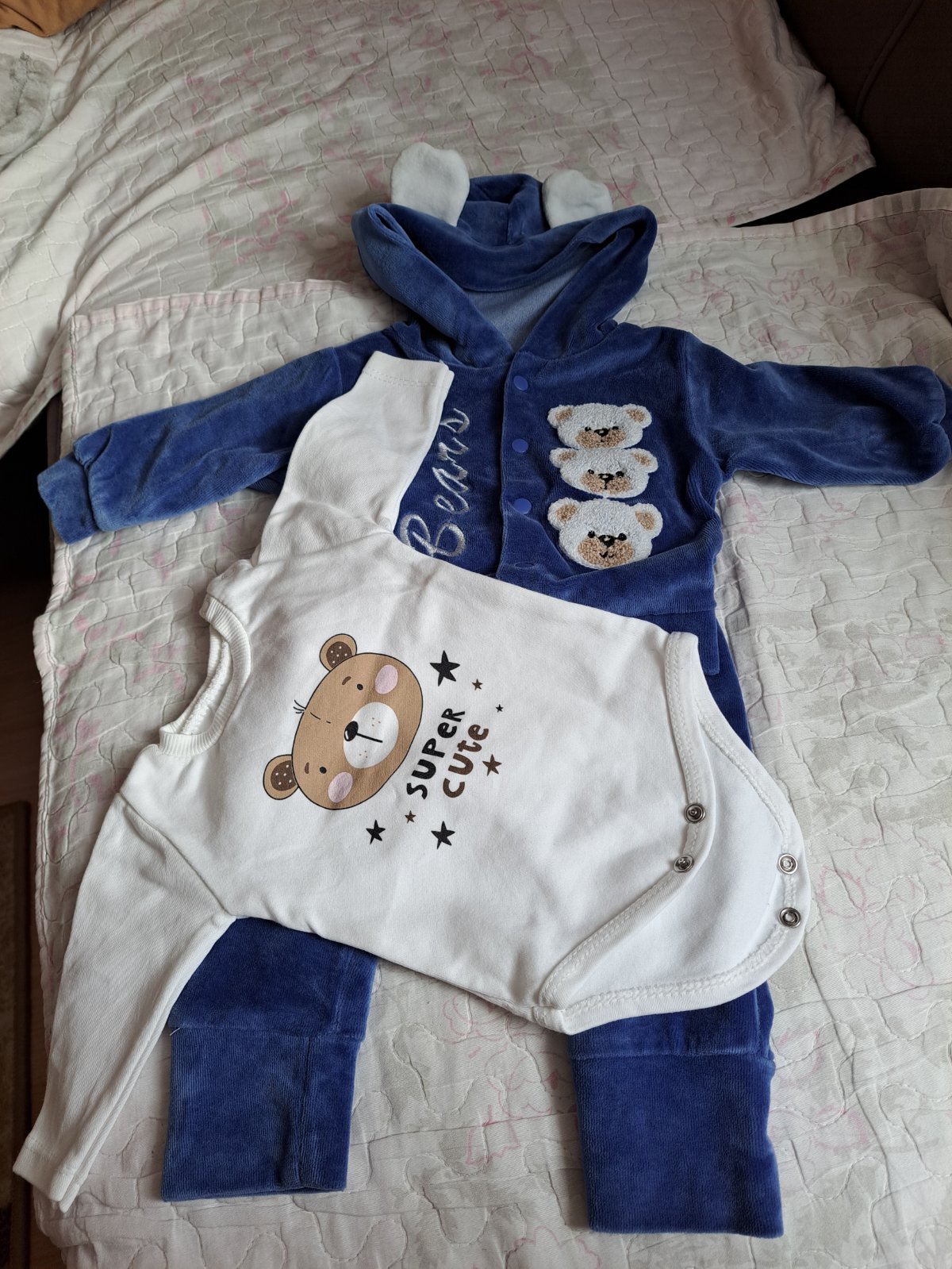 Krasna velurova suprava, body, teplacky a mikina..nositelne od 56 po 62 aj dlhsie. Fakt krasne ukaze na babatku.