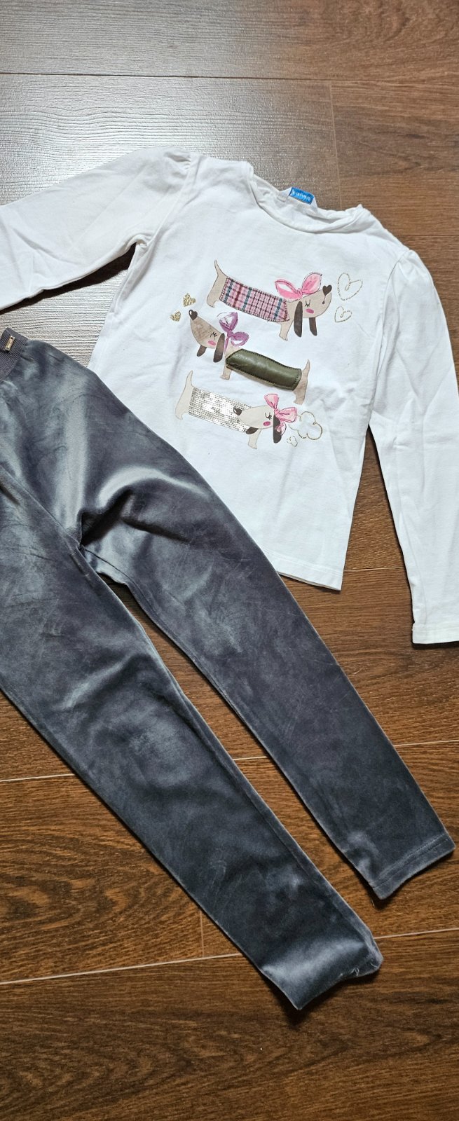 Ponukam na predaj krasny znackovy setik pre dievcatko do skoly. Predlzena mikina a teplakove nohavice. Vecicky boli nosene, ale su vo vybornom stave, bez akychkolvek poskodeni, zmolkov, nevyblednut...