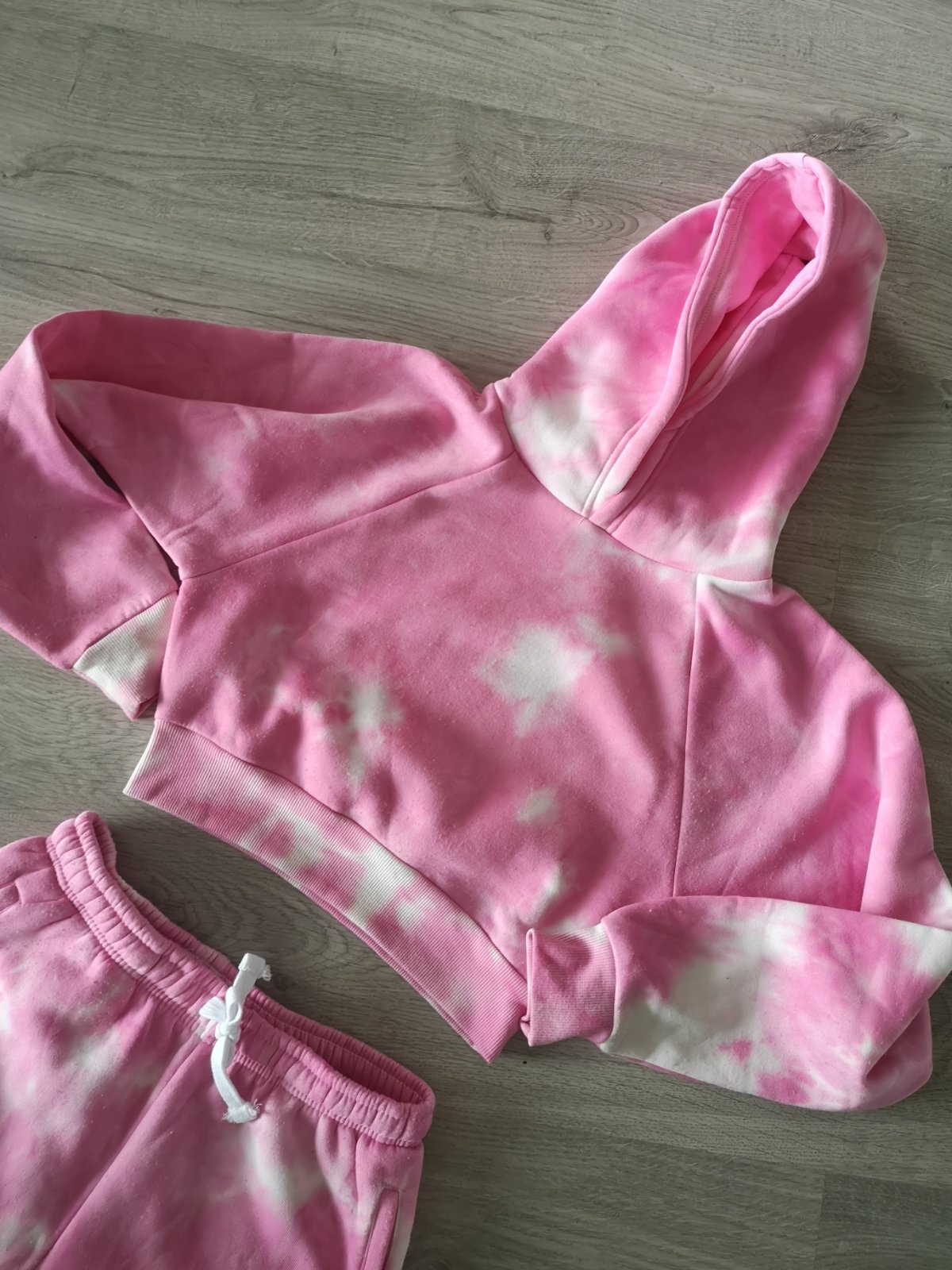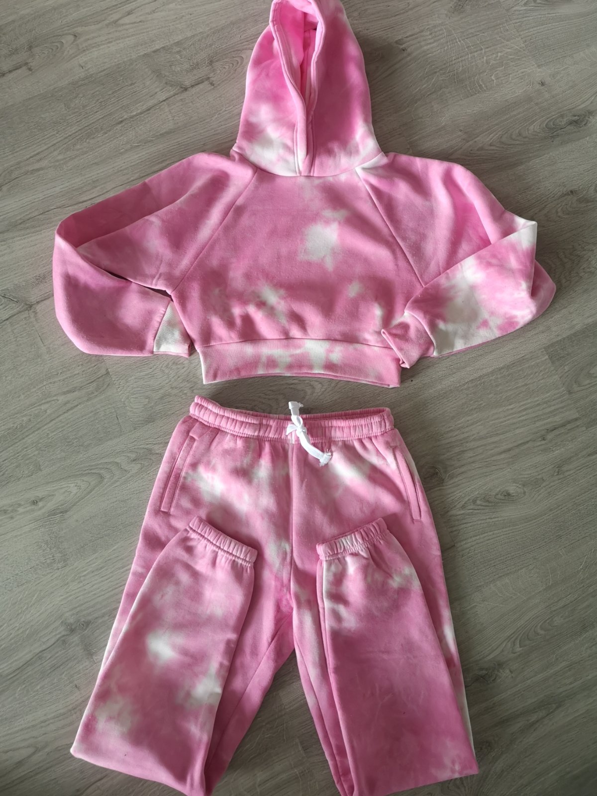 Predám teplakovu súpravu, velkost S. Mikina je crop, má dĺžku 43 cm, šírku pod pazuchami 45 cm a dĺžku rukavu od krku 68 cm. Nohavice majú dĺžku 99,5 cm a šírku na páse 35-45 cm.