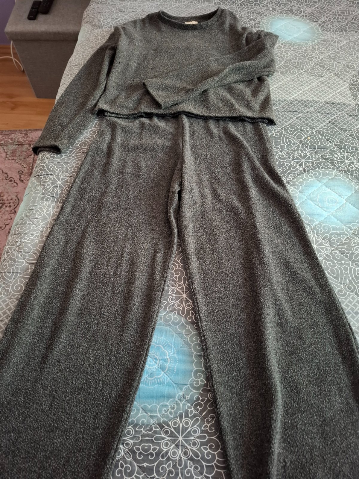 Predám kompet tmavošedej farby,dĺžka nohavic 81cm,taká ako keby vlna, ale je to taká tenká pletenina, zach.stav