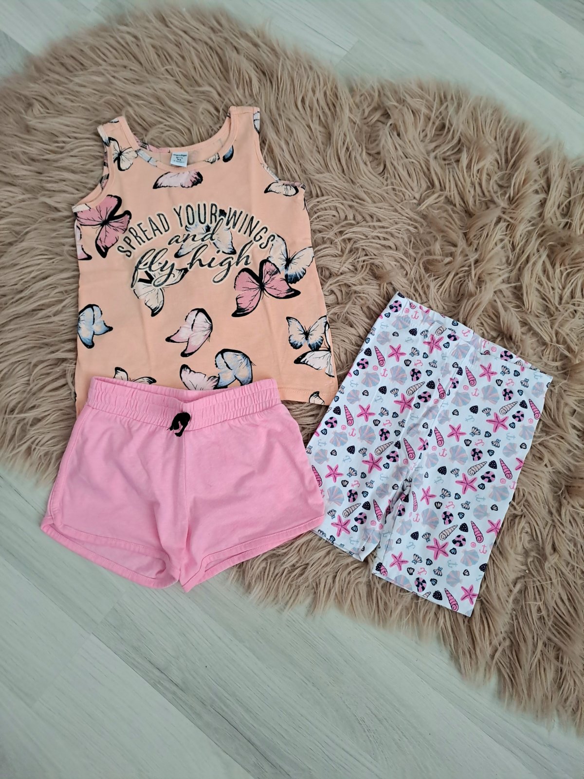 Set pre dievcatko. 1x krasne tielko v Top stave. 2x kratasy, na ruzovych male fliaciky (neskusala som odstranovat). Veľ. 98