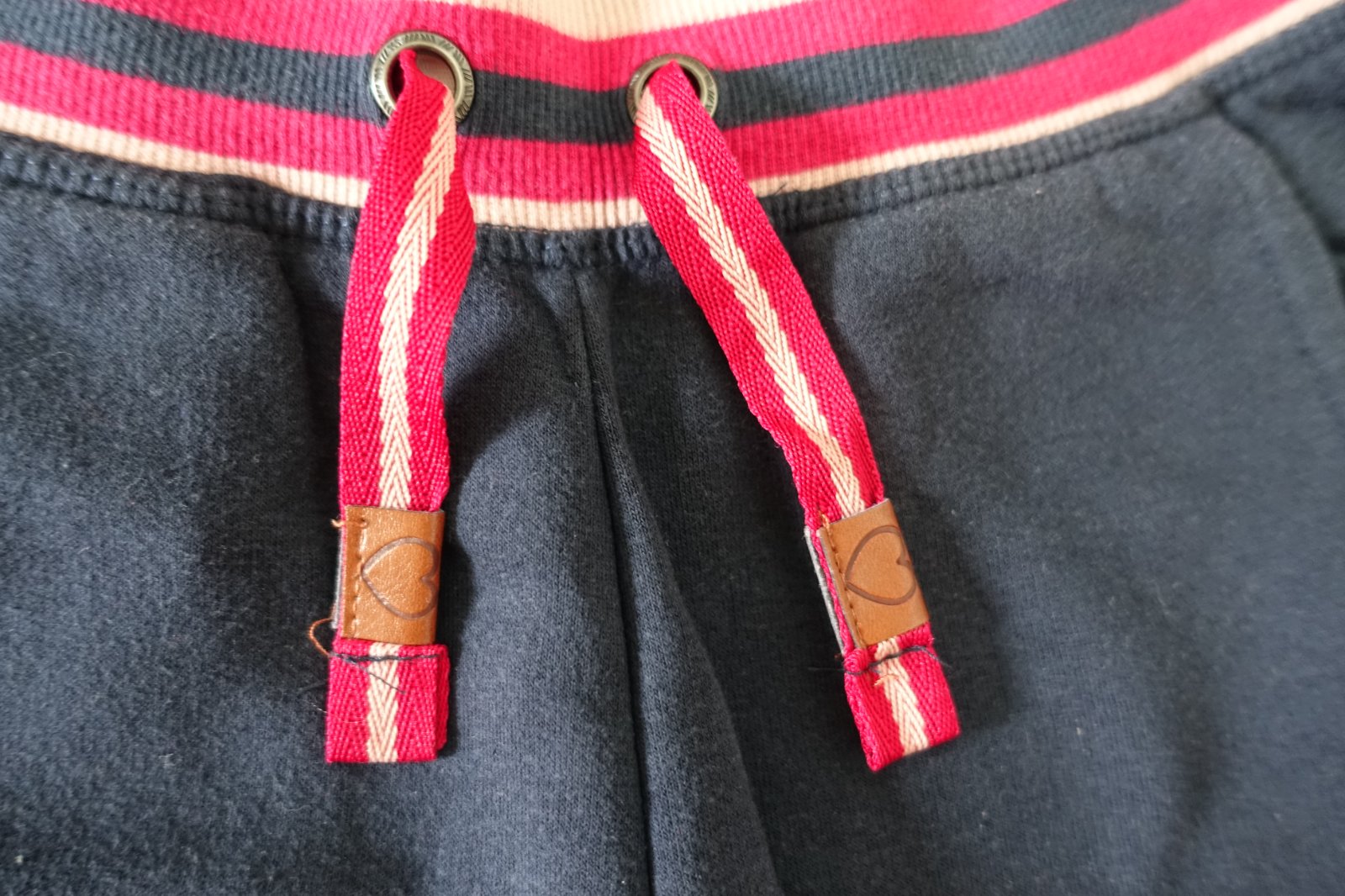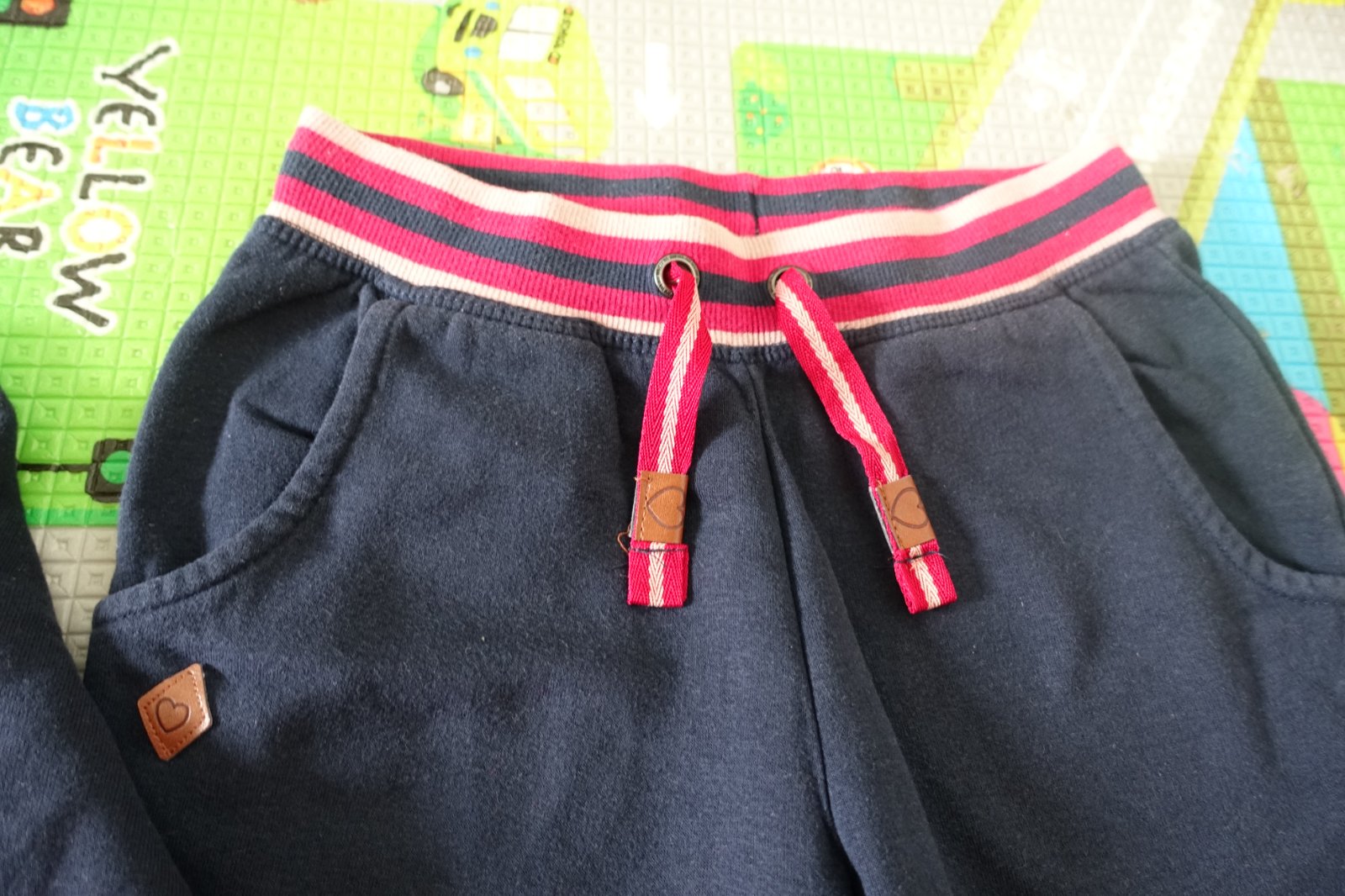 Celková dĺžka tepláčikov je 82 cm a šírka pása v kľuje je 28 cm. Šnúrky sa dajú plne zatiahnuť. (G)