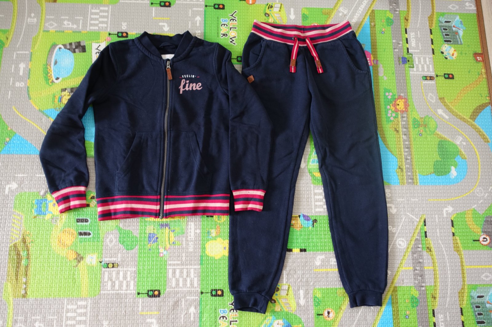 Predám prekrásnu teplučkú mierne podteplenú súpravu značky Pepperts veľkosť 134/140 kupovanú v Lidli. Mali sme ju iba pár krát, ale je v peknom nosenom stave. Trolinka sa mi zdá, pri naklonení, akoby sa chcel začať robiť chĺpoček z prania, ale nie je žmolkavá. Má žiaľ chybičku krásy, dcérka na jednom rukáviku na manžete urobila vpredu malú čiaročku a aj z opačnej strane sú dve bodočky. Možno to pôjde ešte oprať. Na tej manžete to nie je tak viditeľné. Manžeta sa dá dať ešte napoly a potom to nie je vidno. Neviem od čoho, ale sú tam bodočky. Inak je celá pekná. Aj mikinka aj tepláčiky sú mierne podteplené. Určite radosť ešte urobí. Má krásne detaily. Zips je pekne funkčný.