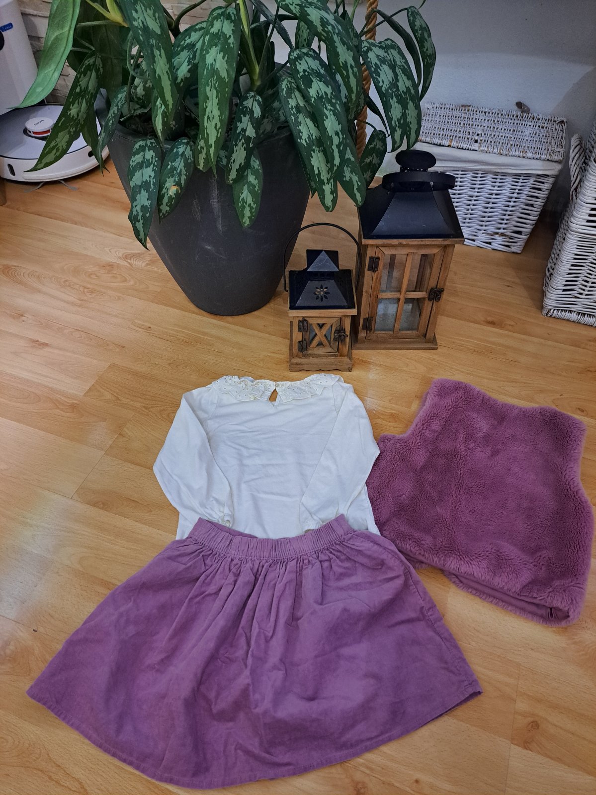Krásny komplet pre dievčatko. Nosené príležitostne. Farba v skutočnosti menej sýta, jemne fialovo-ruzova.