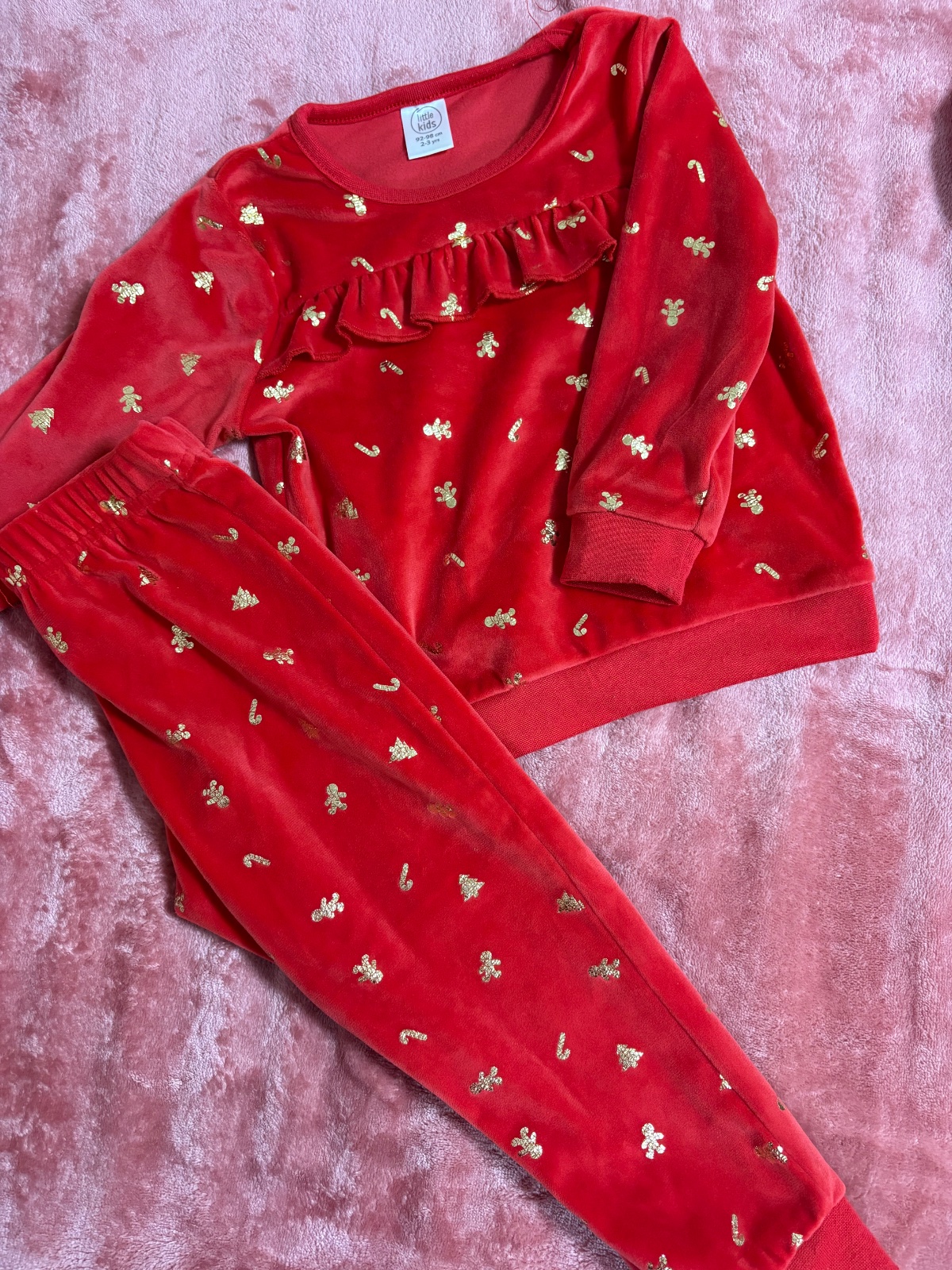 Predám vianočný komplet pre dievčatko. Drobný fliačik na tričku (viď foto). Zohľadnené v cene.