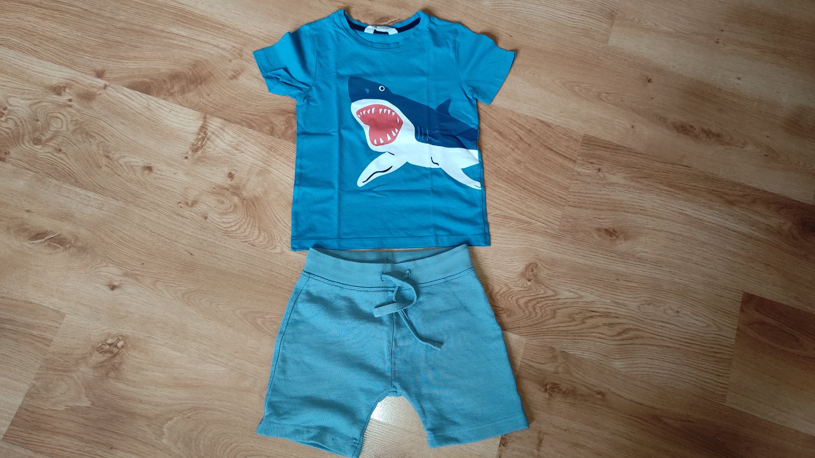 Ponúkam na predaj pekne bavlnené vecičky pre chlapca. Kraťasky Lindex, výborný materiál, super sedía, tenká teplakovina. V peknom nosenom stave, nevyblednute, bez zmolkov, jediná chyba mala bodka, viď foto. Tričko so žralokom hm, úplne ako nové len počas jednej dovolenky nosené. Cena 8 eur.