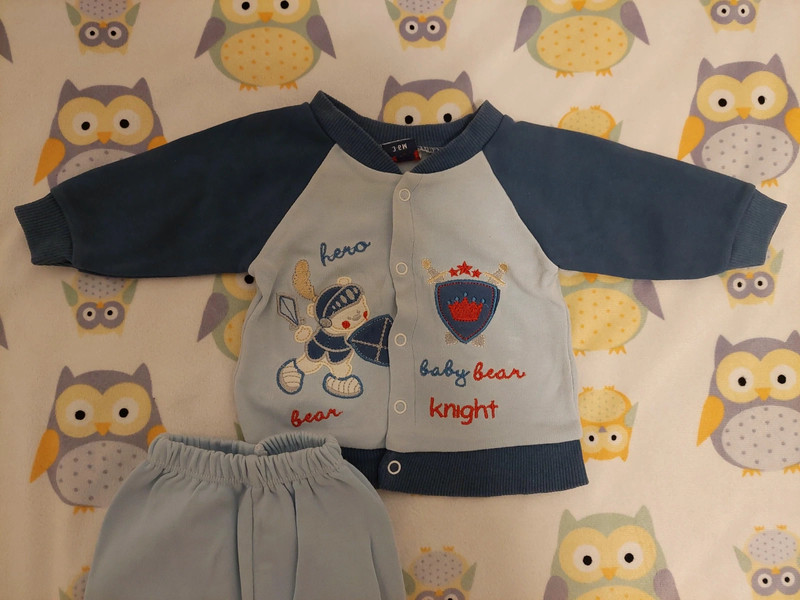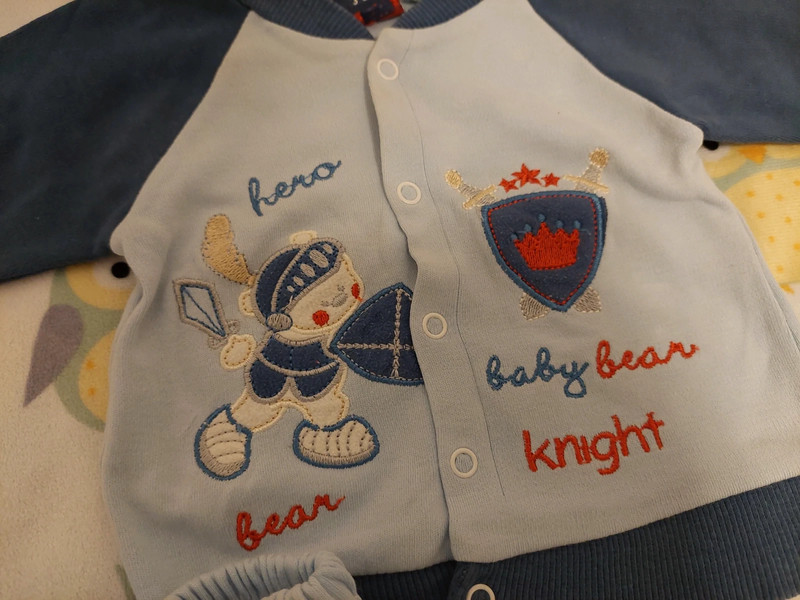 Parádna tepláková súpravička - mikinka + tepláčiky s postavičkou rytiera. Top stav, pár krát oblečená bez poškodení. Veľkosť 68.