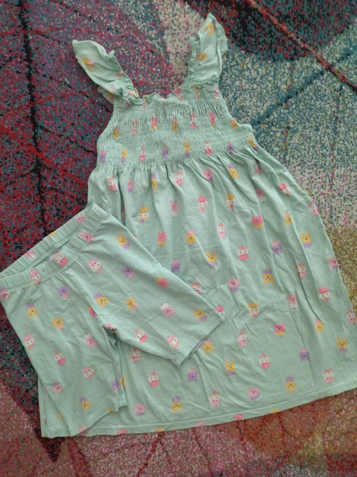 Možno tri krát oblečené. Spodok 116, šaty 122.