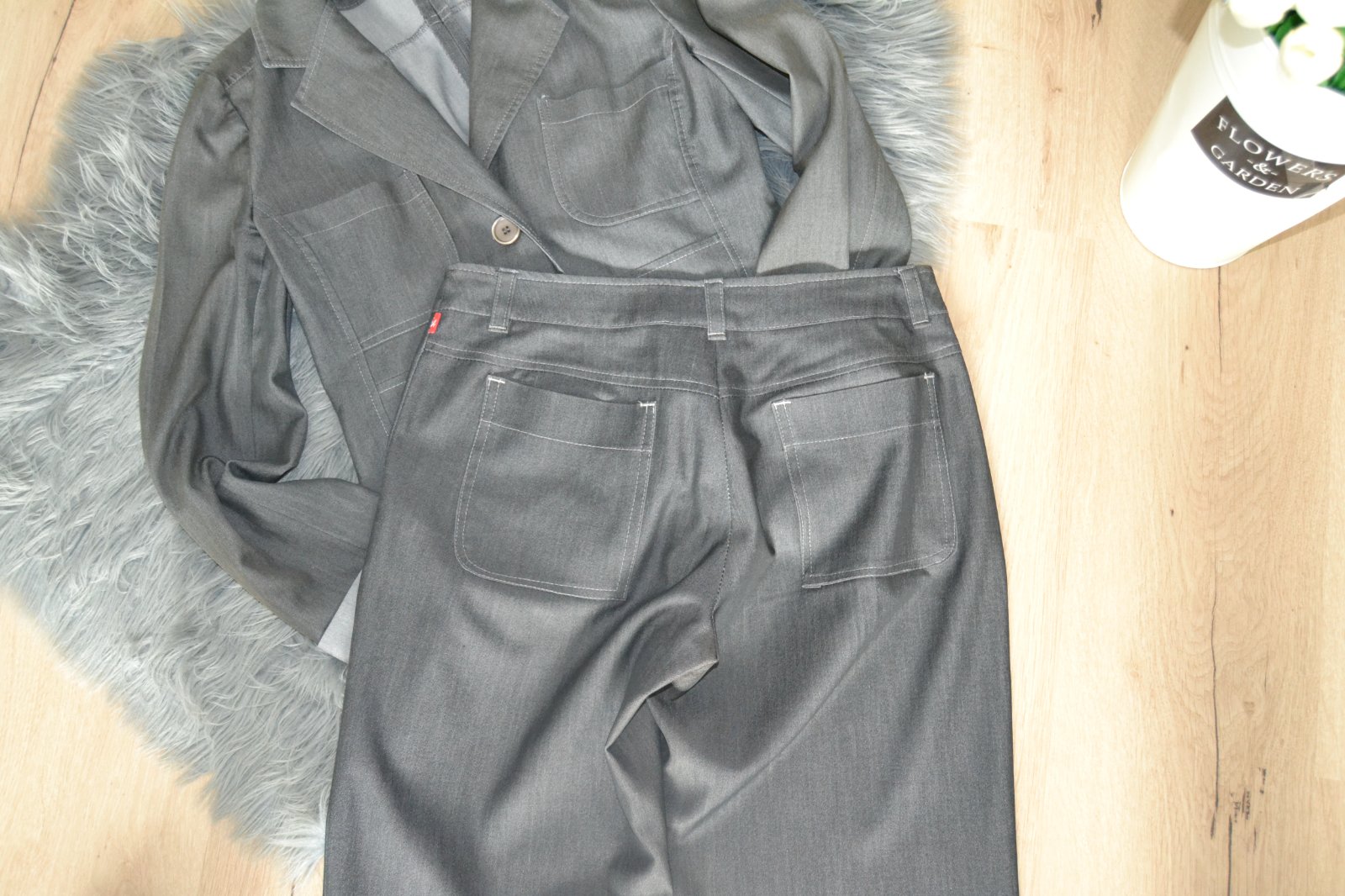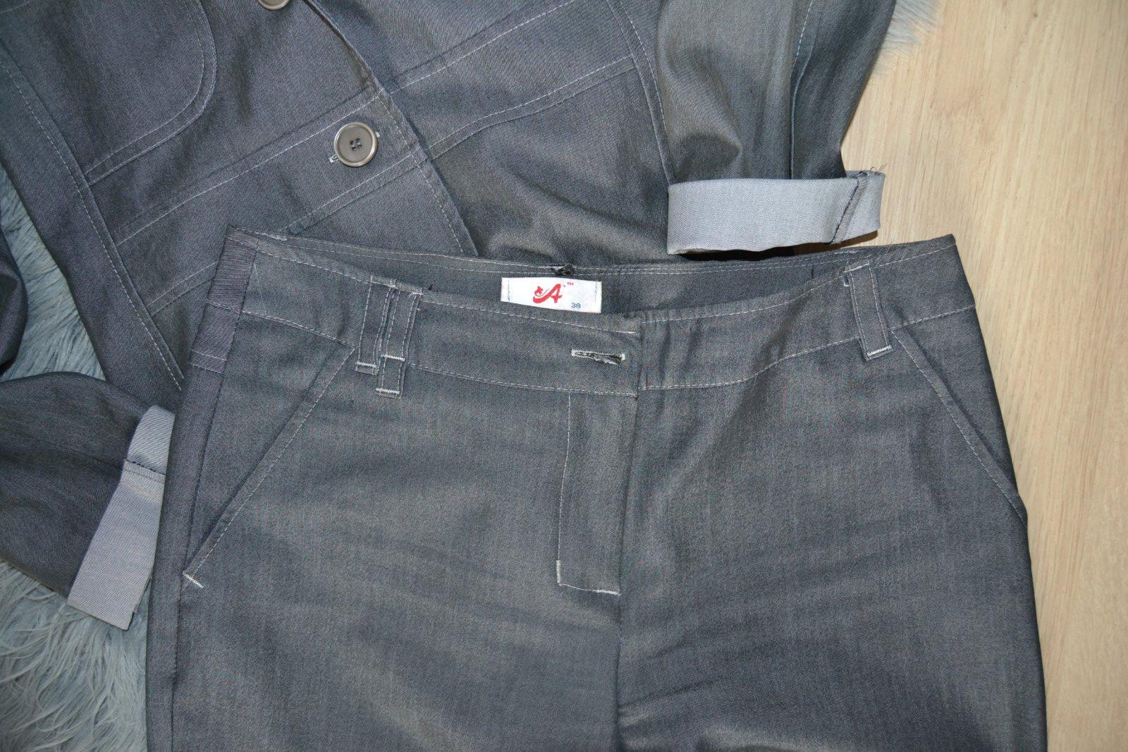 Dámsky sivý nohavicový kostým, veľ. 38, TOP STAV