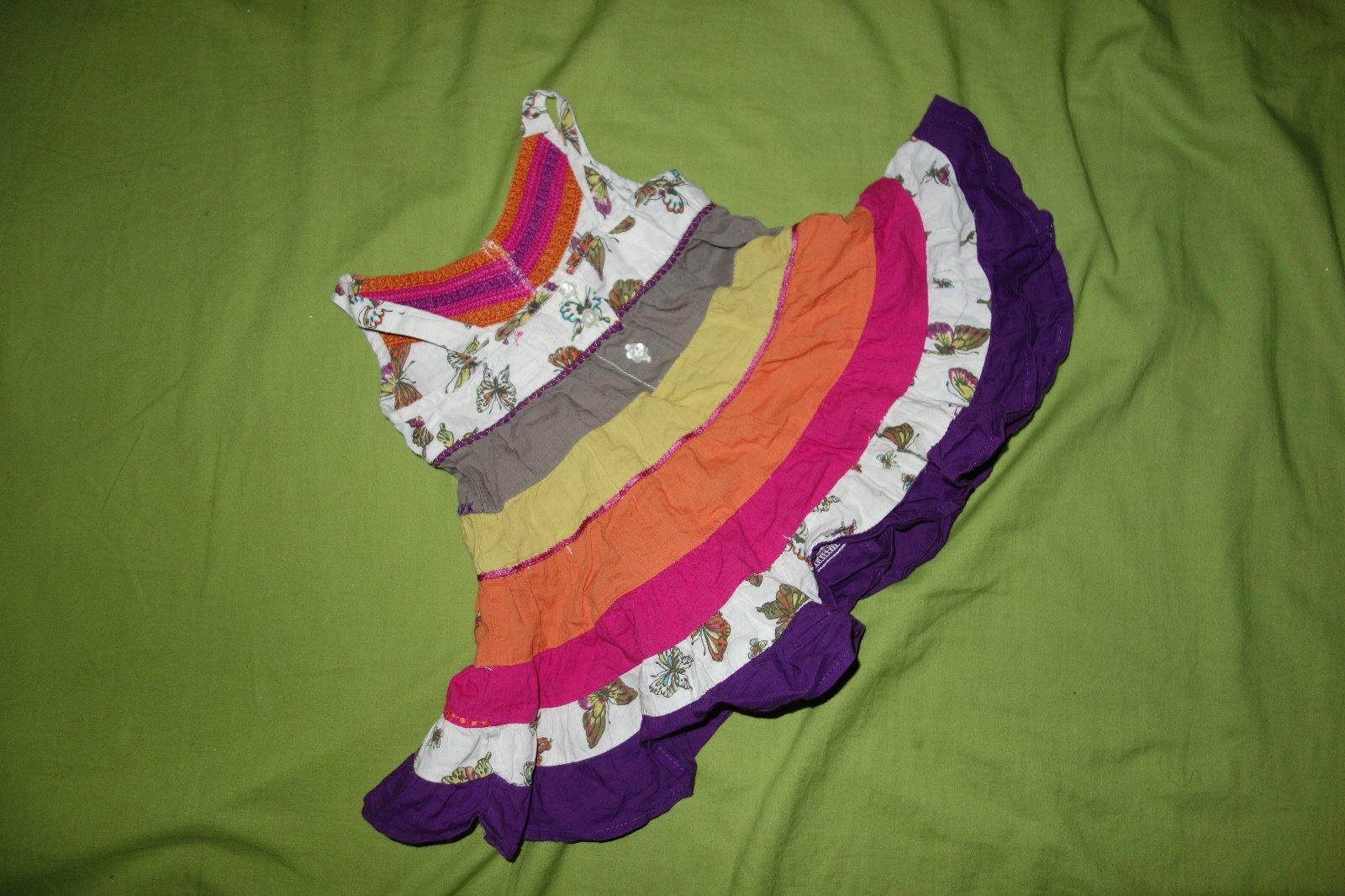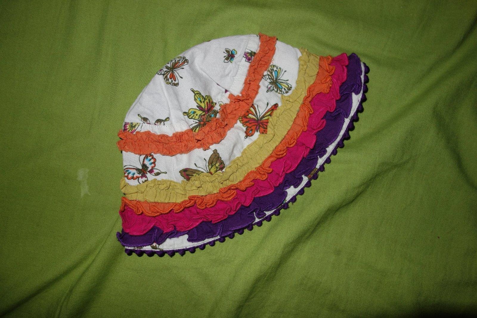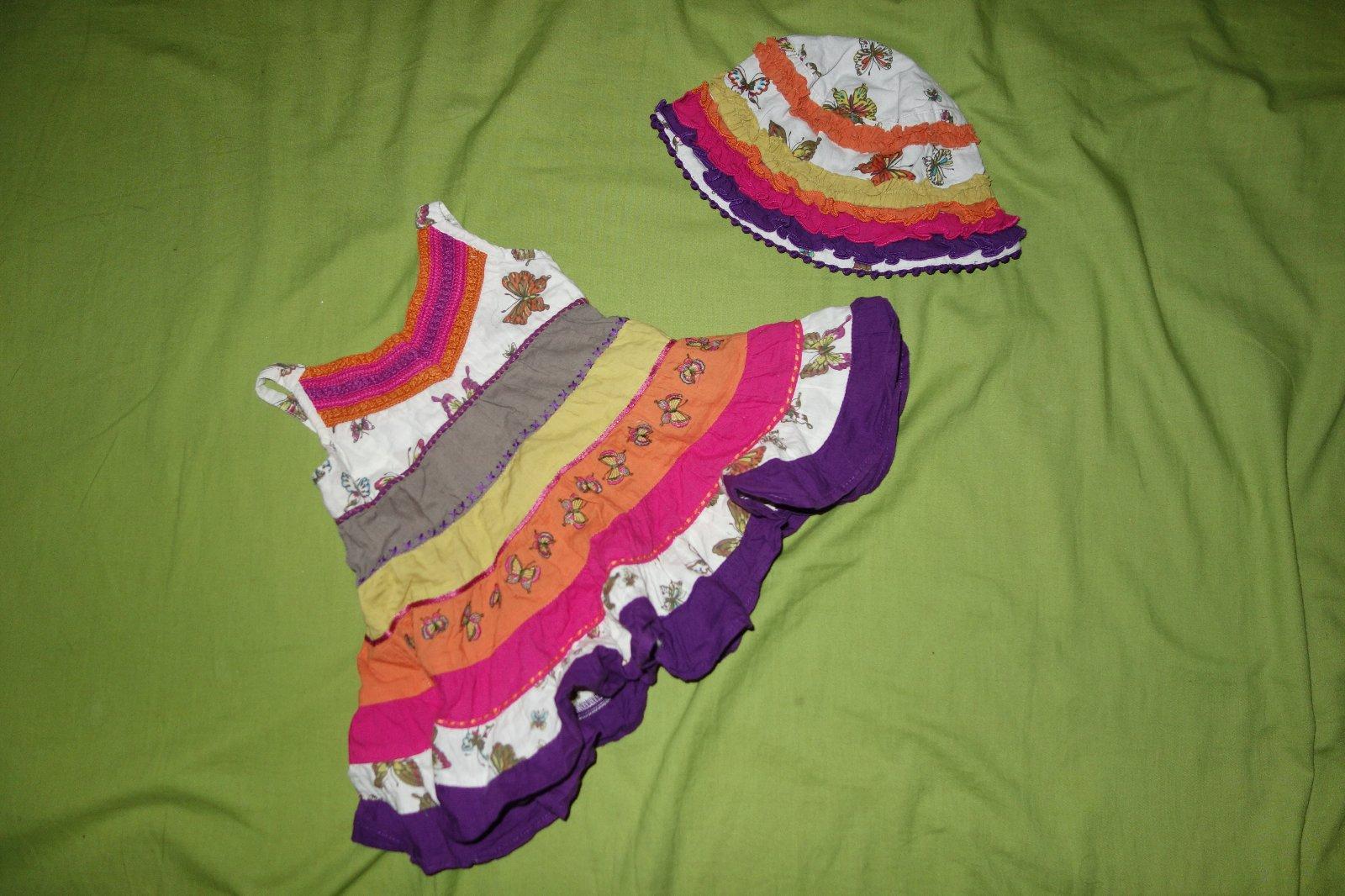 Krasne pestrofarebne satocky s motylikmi s klobucikom vo velmi dobrom nosenom stave.